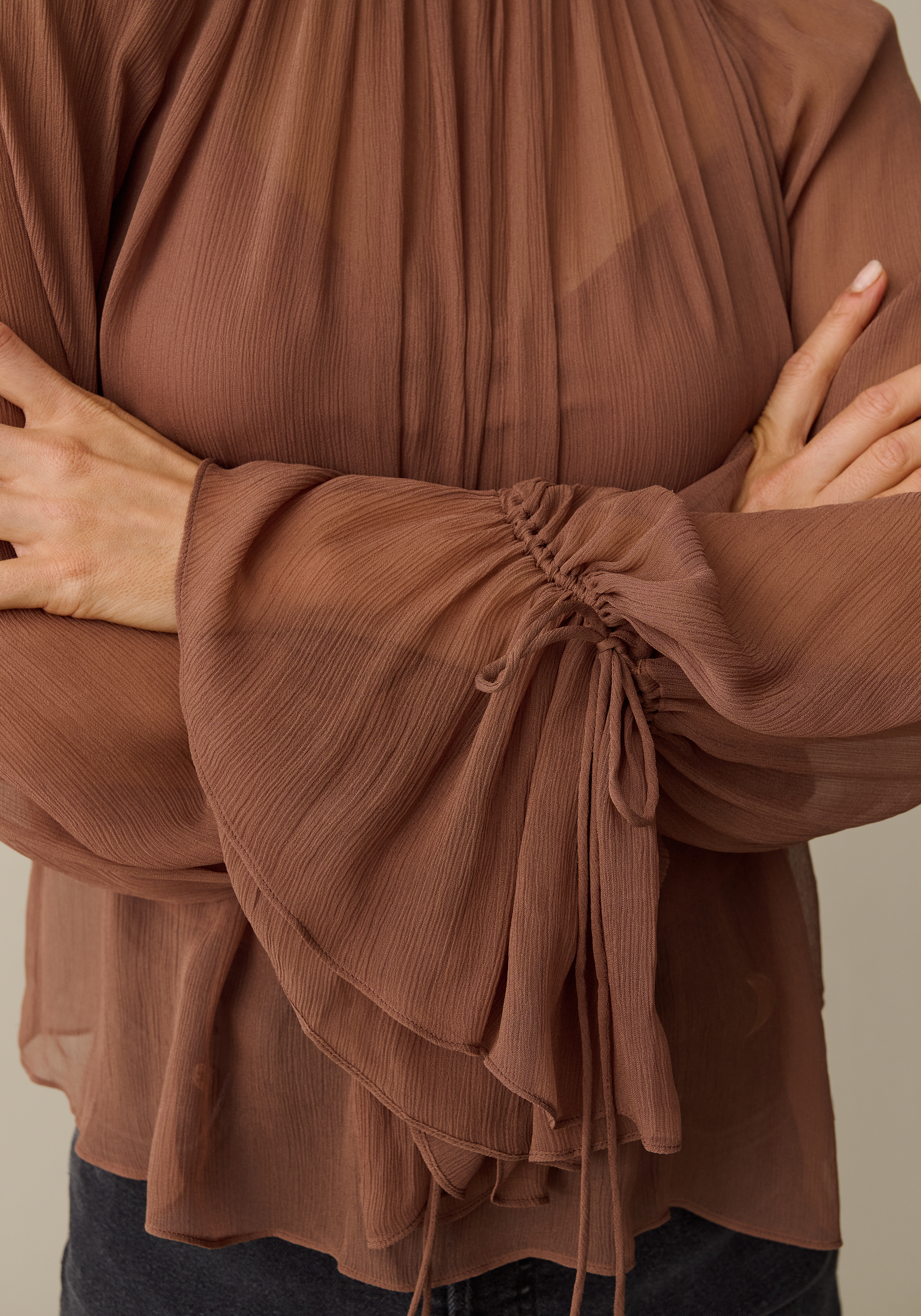 A beautiful chiffon blouse with a relaxed flowy fit, the Aurelia Top brings an elevated boho and ethereal feel to any outfit. Featuring billowy sleeves and a gorgeous back necktie, this top offers a touch of romance to your wardrobe.
