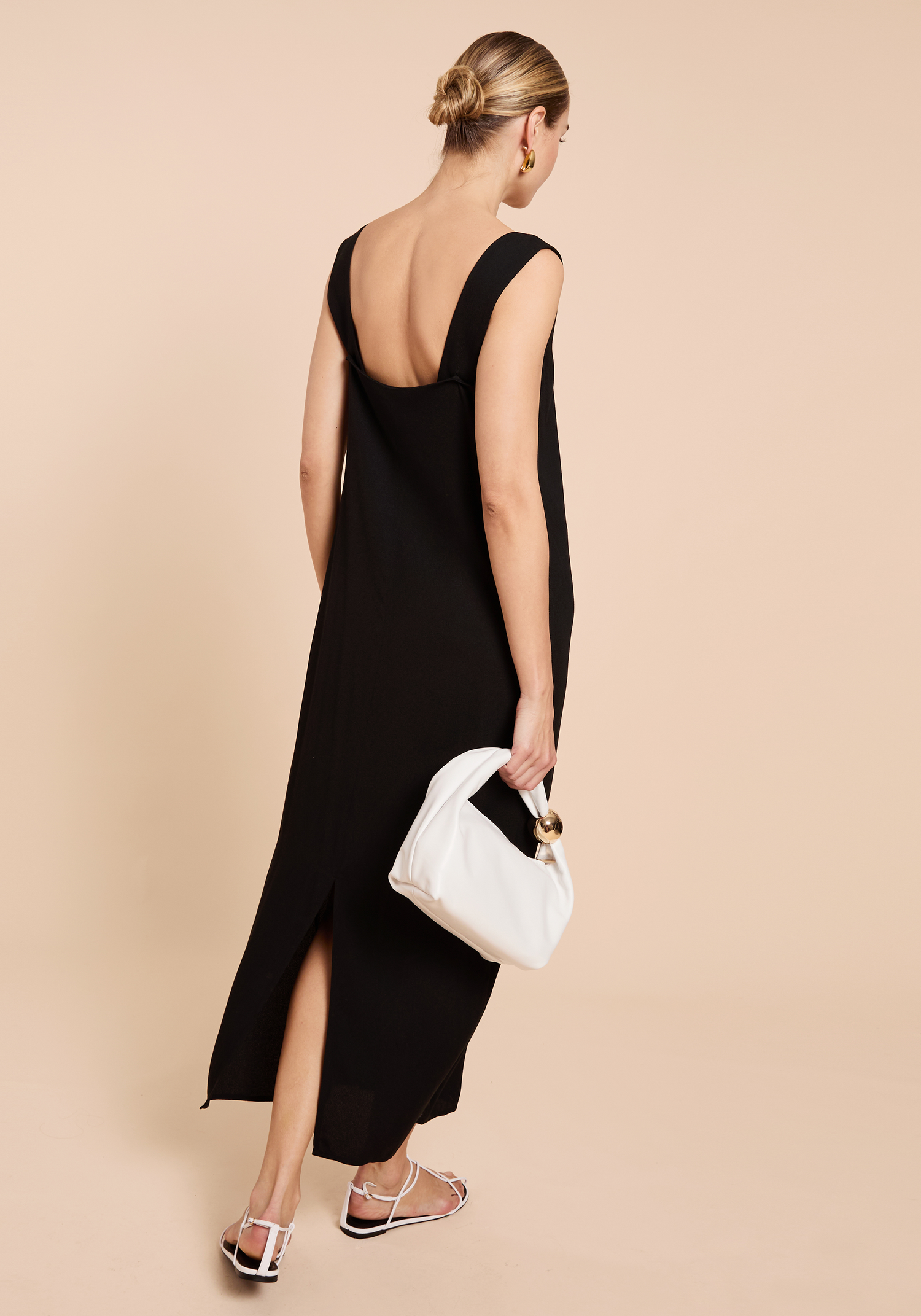 The Ione Dress embodies simple, everyday elegance with its timeless black color and sophisticated square neckline. Made from a light and airy fabric, it offers breathable comfort while maintaining an effortlessly chic and simple silhouette.