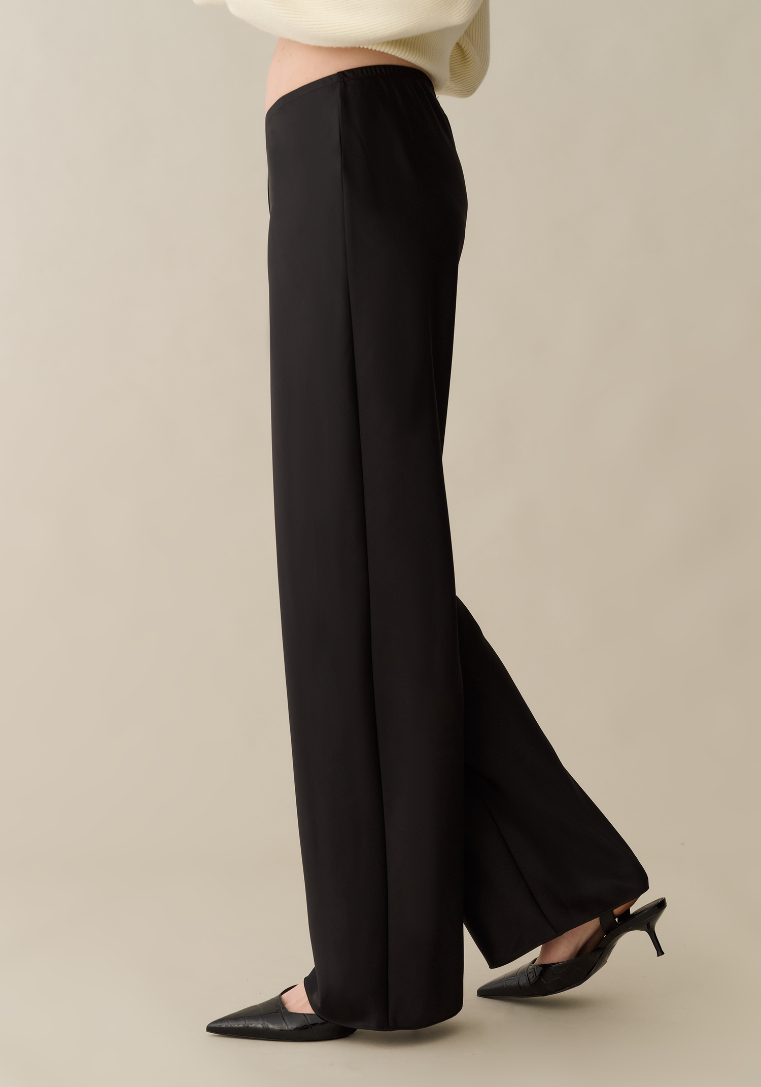 These silky trousers feature a relaxed, straight-leg silhouette that drapes beautifully with every step. Designed with a clean waistband and a subtle sheen, they balance polish with ease. Effortlessly elegant, they transition seamlessly from lounging to evenings out.