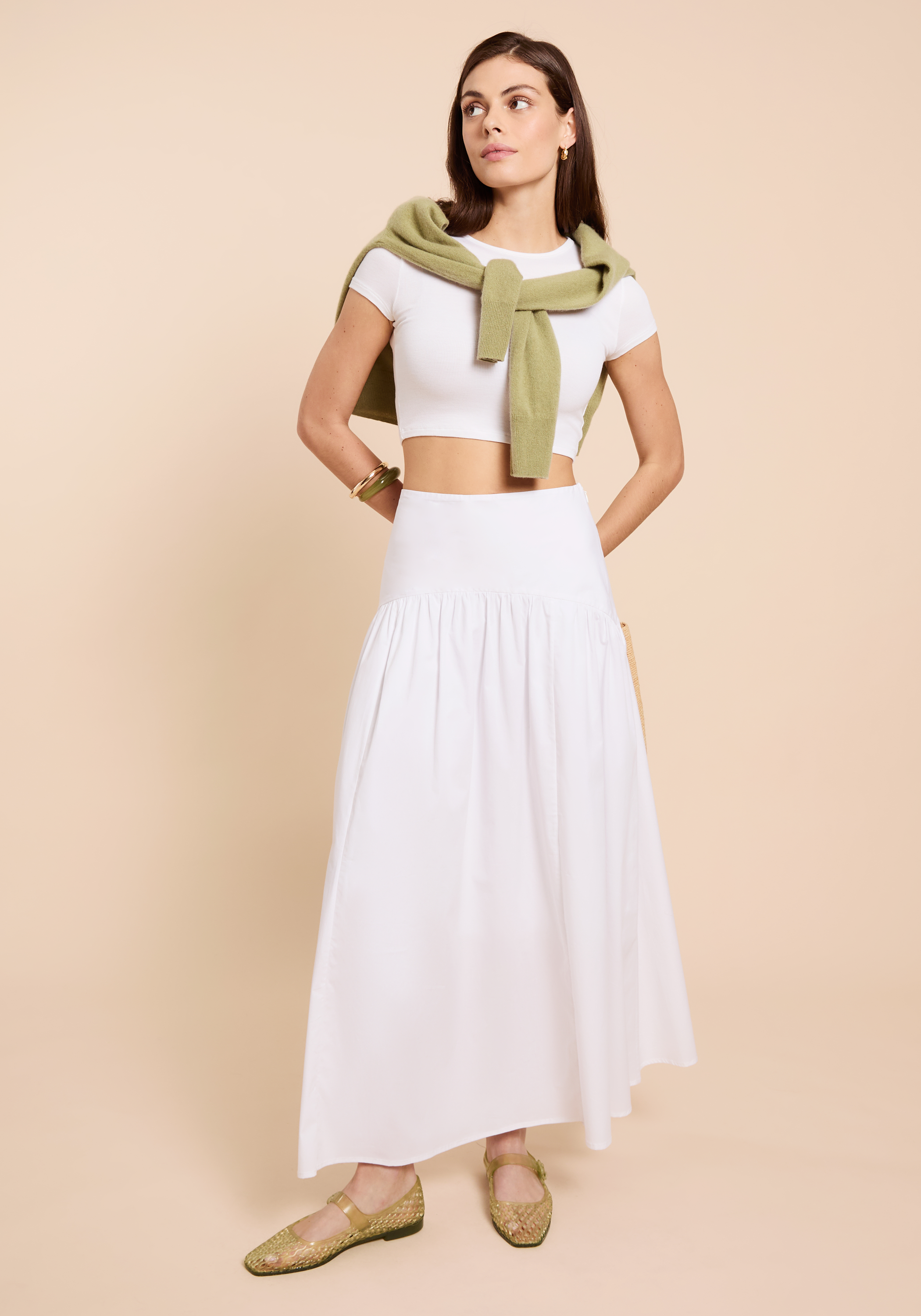 The Vashti Skirt combines a thick waistband and flowy skirt in a cotton blend material for a flattering silhouette. Dress it up or down for endless style options and an effortlessly cool look.