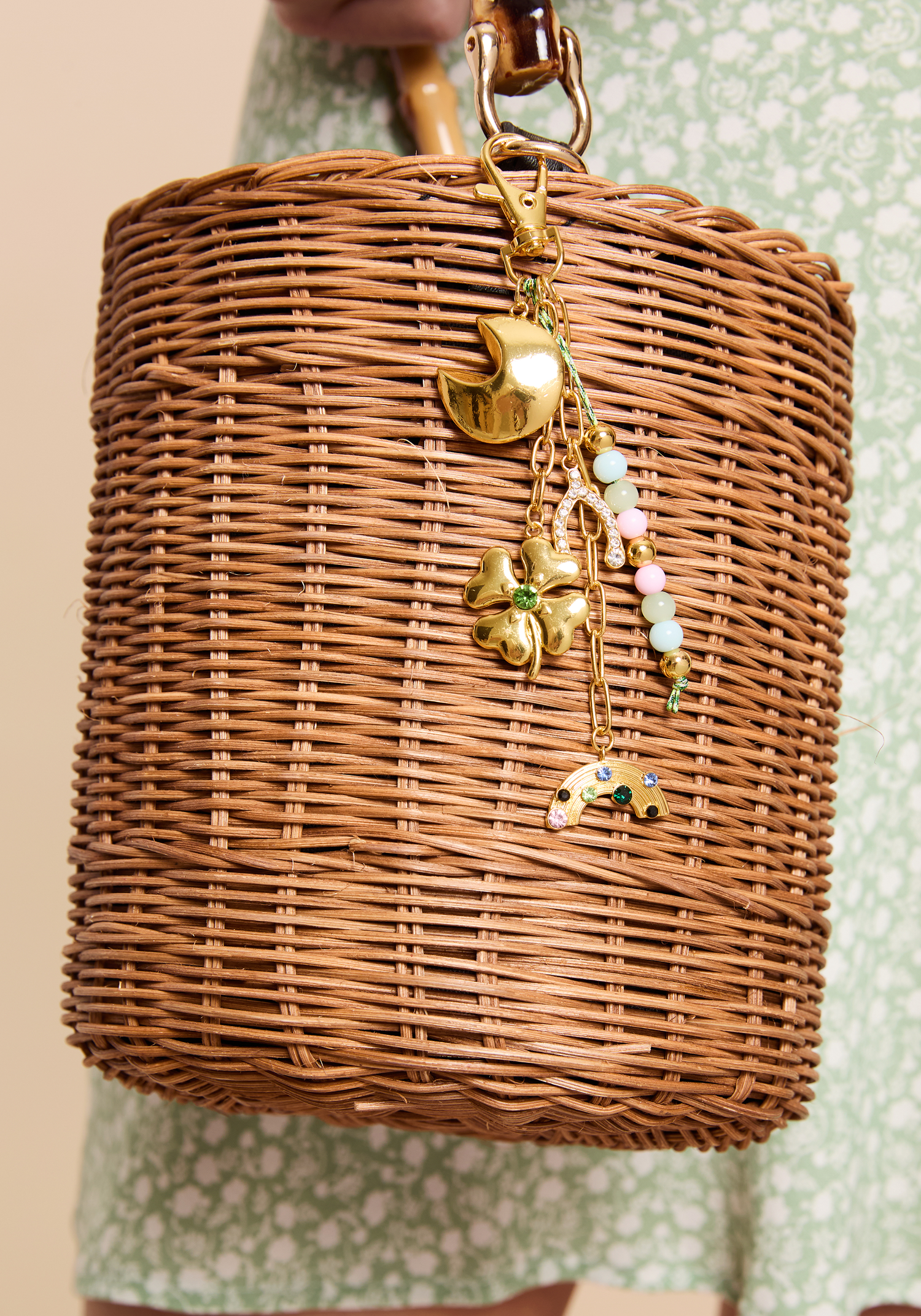 This fun Lucky Charm keychain combines a beaded string, crystal rainbow, fortune cookie, and four-leaf clover to bring endless luck. Equipped with a durable lobster clasp, it offers both functionality and versatility, making it an ideal accessory to carry positive energy wherever you go.