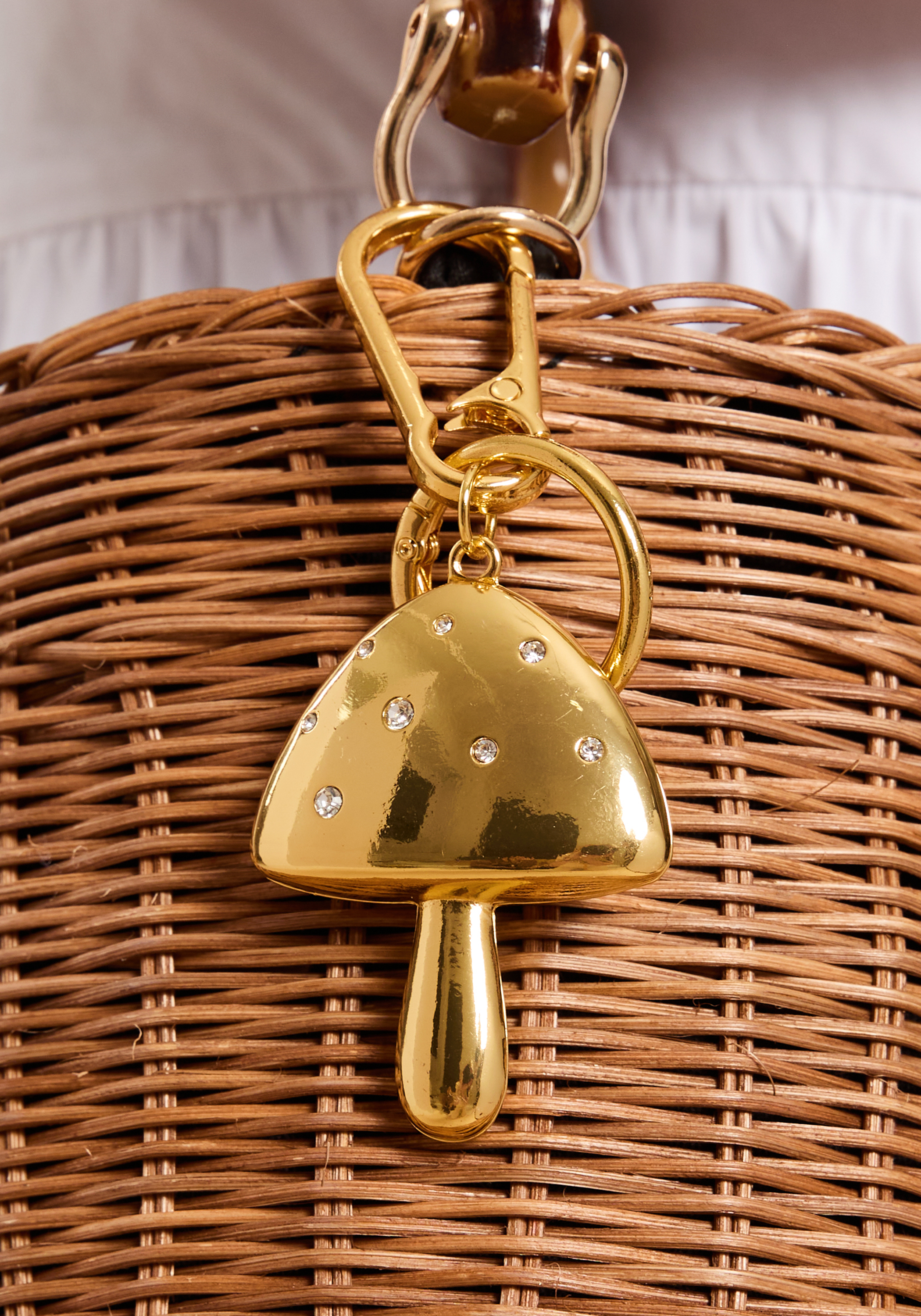 This oversized mushroom charm combines playful whimsy with expert craftsmanship, featuring sparkling crystal accents that highlight its bubbly design. Its versatile clips makes it perfect for adding a unique touch to any outfit.