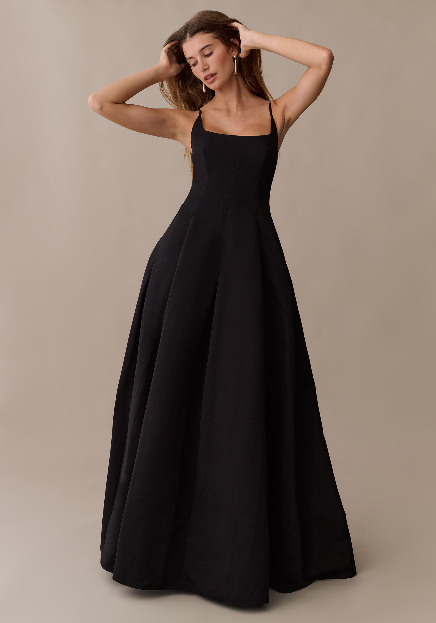 The Ziva Dress combines a fitted, structured bodice with a generous full skirt for a beautifully balanced silhouette. Paneled construction adds subtle shaping and visual interest while keeping the design understated. Clean lines and thoughtful tailoring make this dress a timeless option for all special occasions.