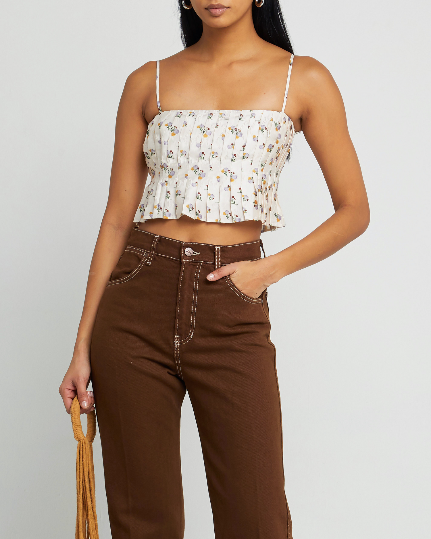 Pretty pleats define this stylish and sophisticated crop top. It pairs perfectly with your favorite high-waisted pants.