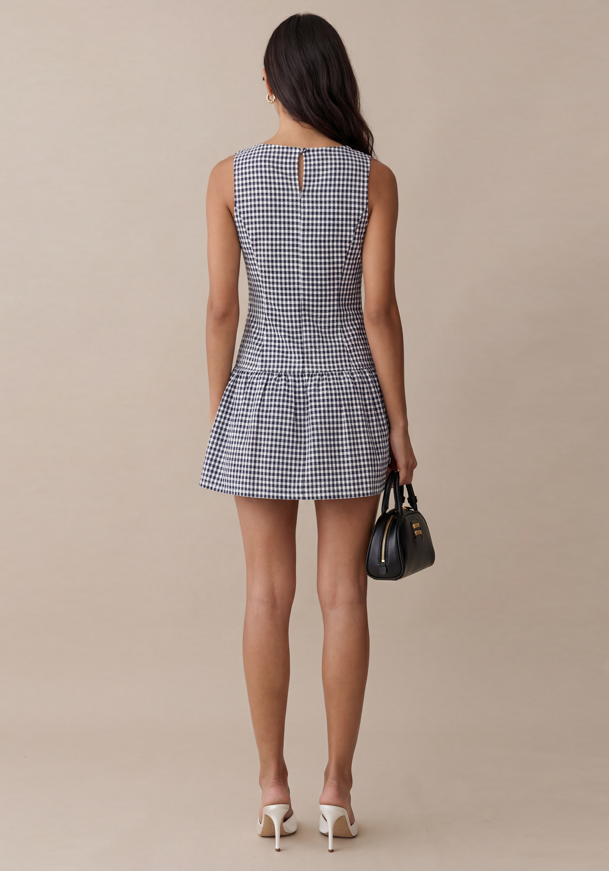 The Ruth Dress boasts a drop waist and high neckline for a classic and charming look. Done with covered buttons and a mini length for a fresh and flirty feel.