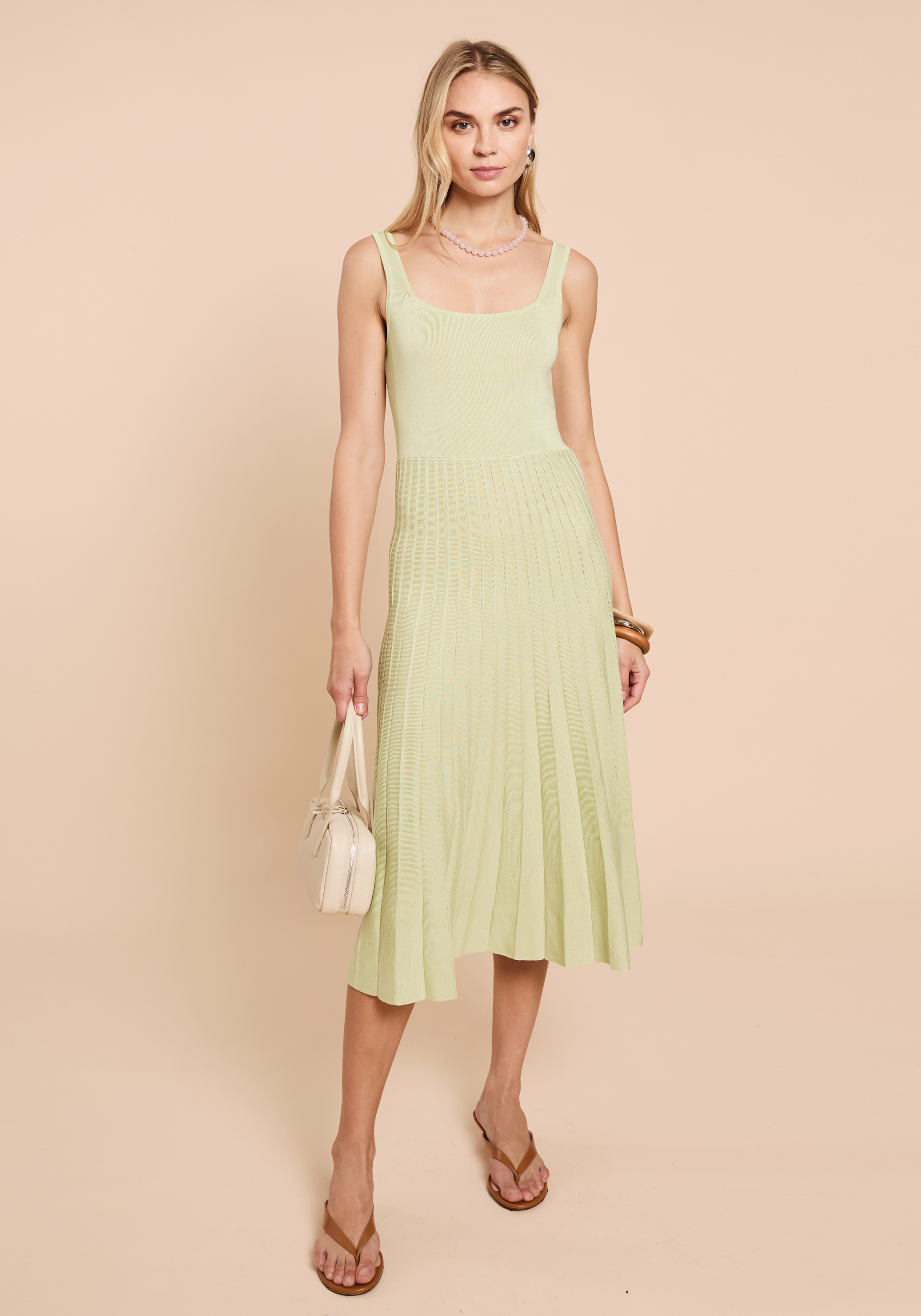 The Isadora Dress features a super soft green hue in a luxurious knit fabric that stretches effortlessly for easy comfort. Its flattering A-line silhouette exudes ladylike elegance, making it an ideal choice for those seeking both style and ease with this sweet style.