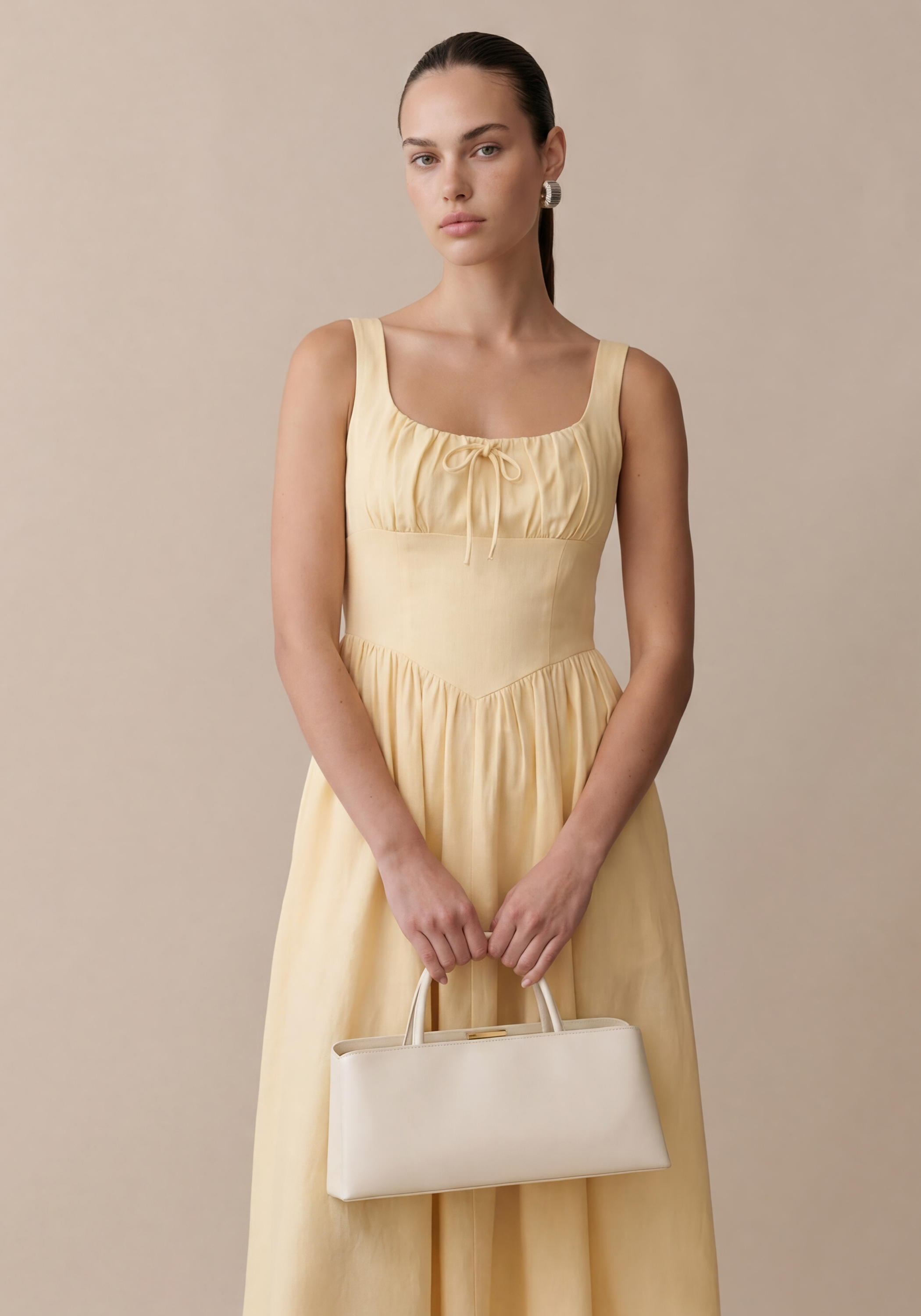 Elevate your wardrobe with the Chiara Linen Dress. Designed with a fitted waist and gathered bust for a flattering silhouette, its charming bow detail adds a touch of femininity. Made of breathable linen, this dress combines style and comfort effortlessly.