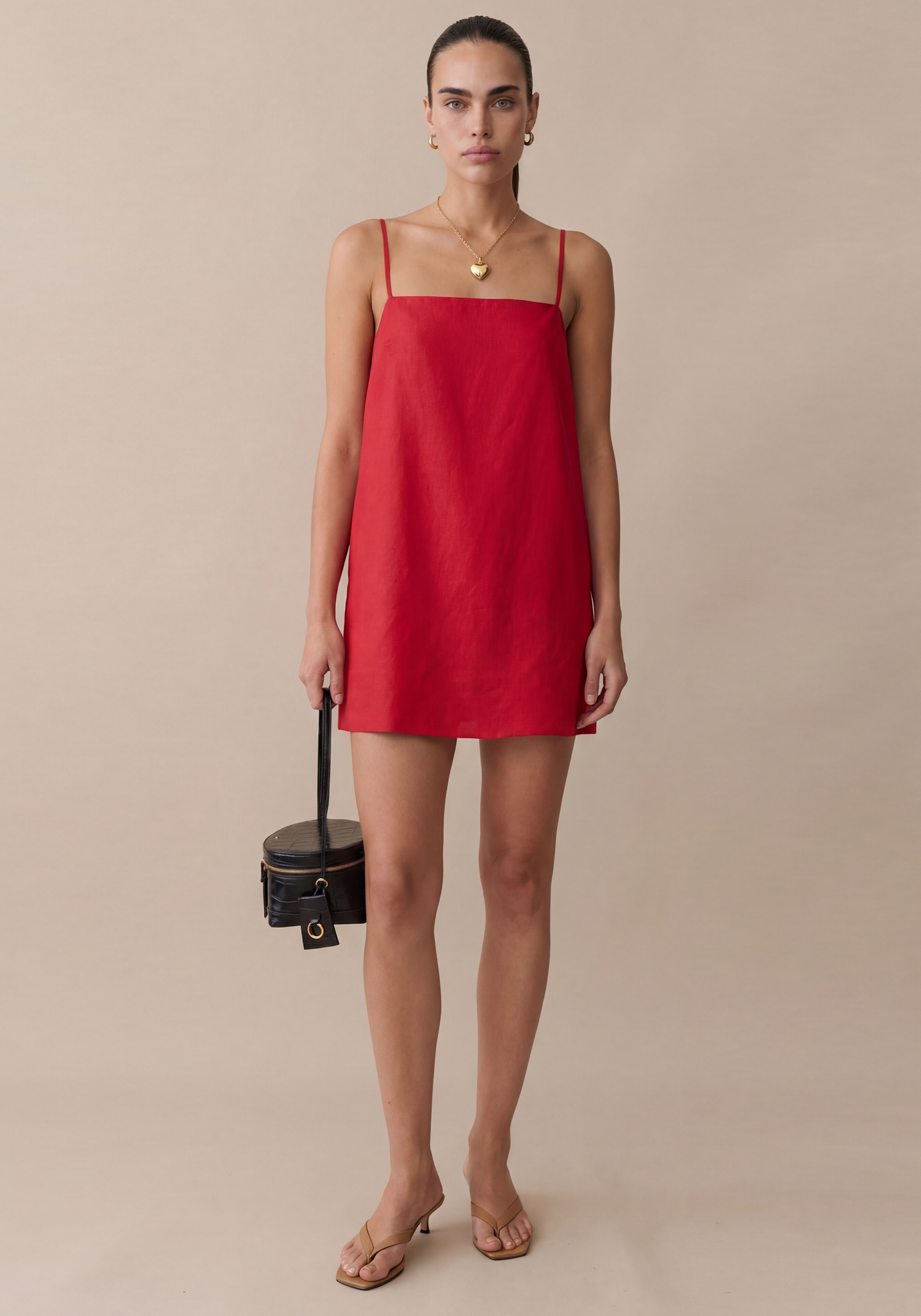 The Rosalie Linen Dress offers versatility and style with its adjustable tie straps, adding both charm and practicality. Made from 100% linen, this easy relaxed sheath dress is perfect for any occasion. Its mini length adds a touch of playfulness to the classic and timeless design.