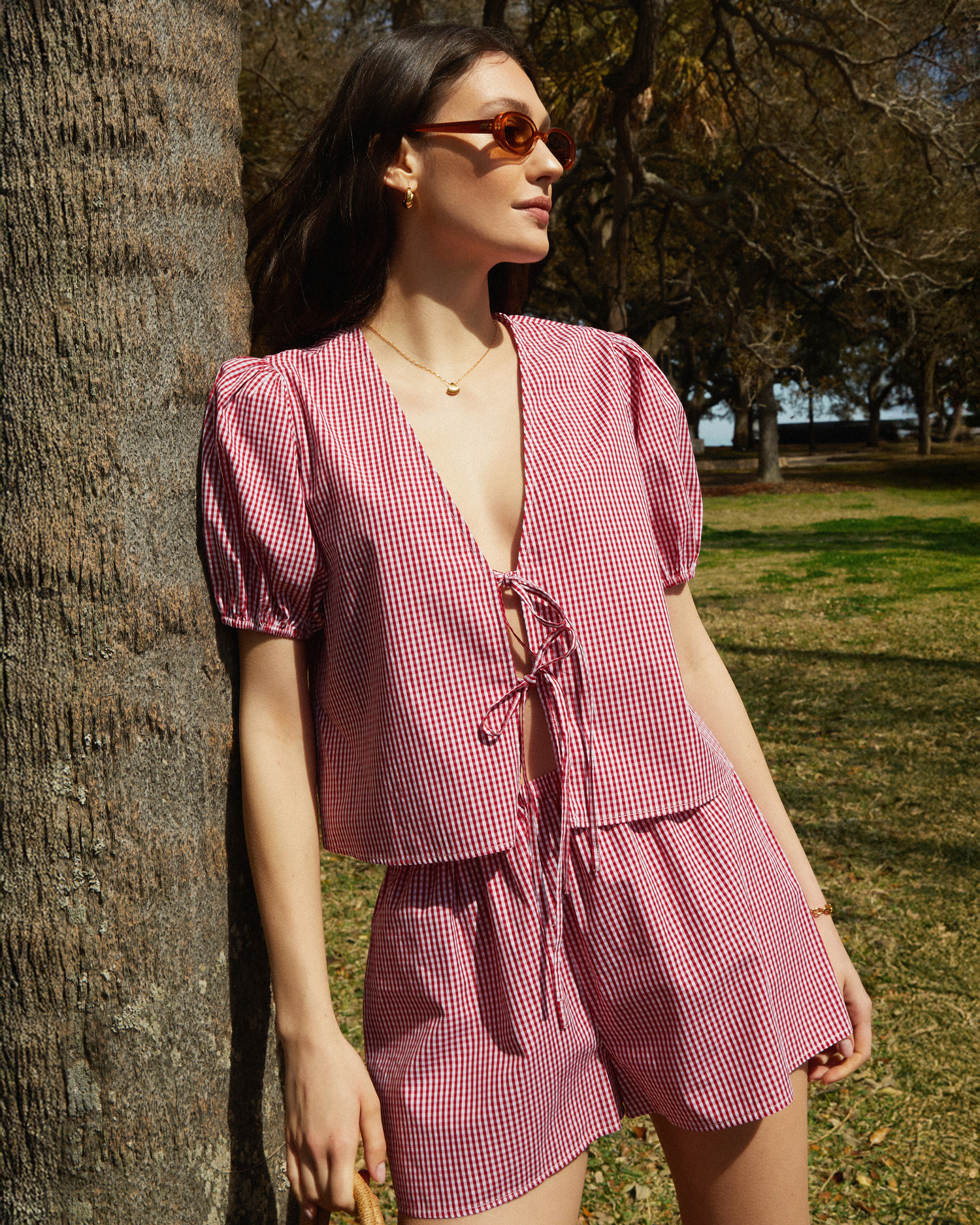 Introducing the Wilder Set, made in 100% cotton classic gingham. Done with an elastic waist for comfort and an open top fastened with front ties for a stylish touch. The sweet puff sleeves add a charming detail to this light and effortless design. Perfect for casual outings and sunny days.