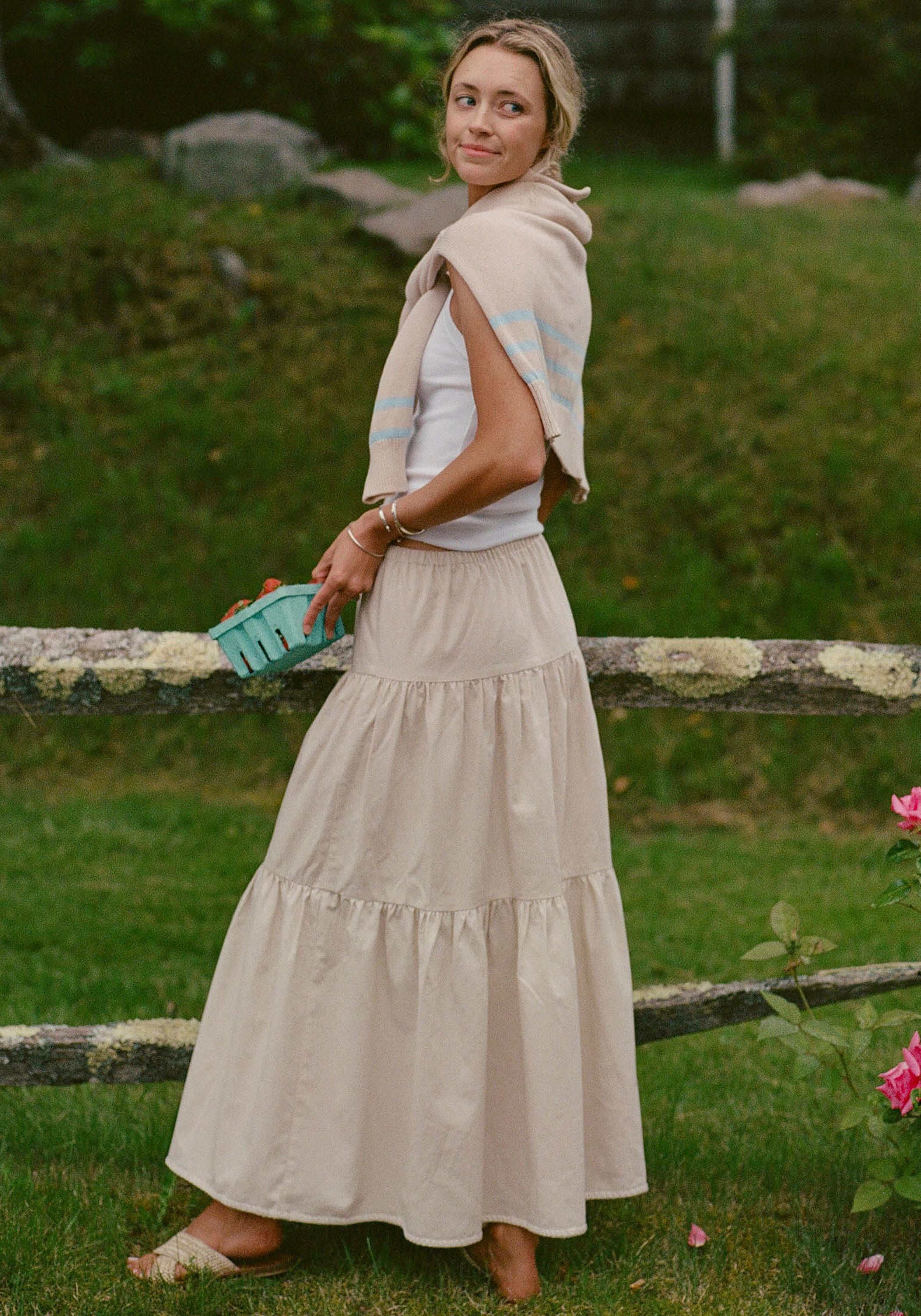 The Madalyn Maxi Skirt offers effortless everyday style with its versatile neutral hue, making it easy to pair with anything. Designed for comfort, it features a stretchy elastic waistband and a flowy, tiered silhouette. Delicate embroidered edging at the hem adds a refined touch, elevating this skirt from casual to chic with ease.