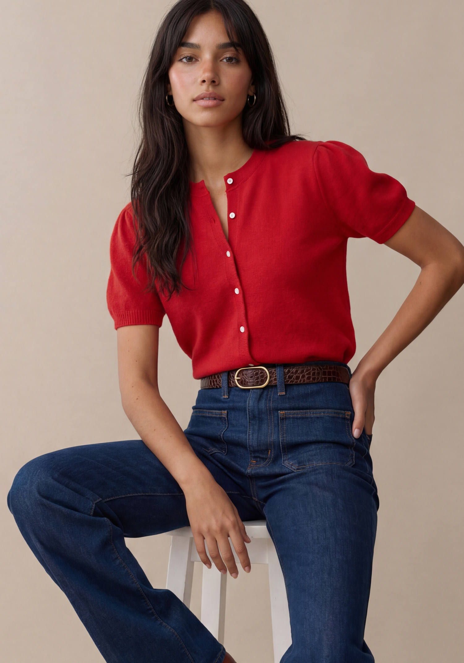 The Edie Cashmere Cardigan is crafted from ultra-soft, 100% cashmere, delivering exceptional luxury and comfort. Its easy, relaxed fit ensures effortless wear, while the short puff sleeves create a charming silhouette.