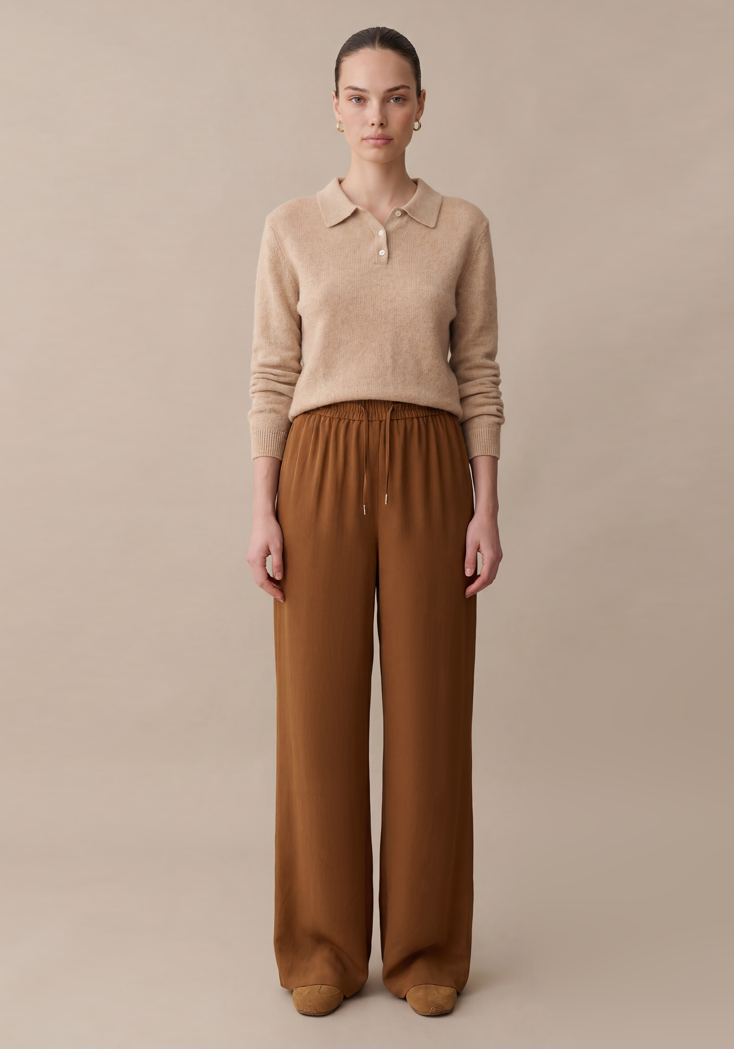 - Elastic waist with drawstring tie