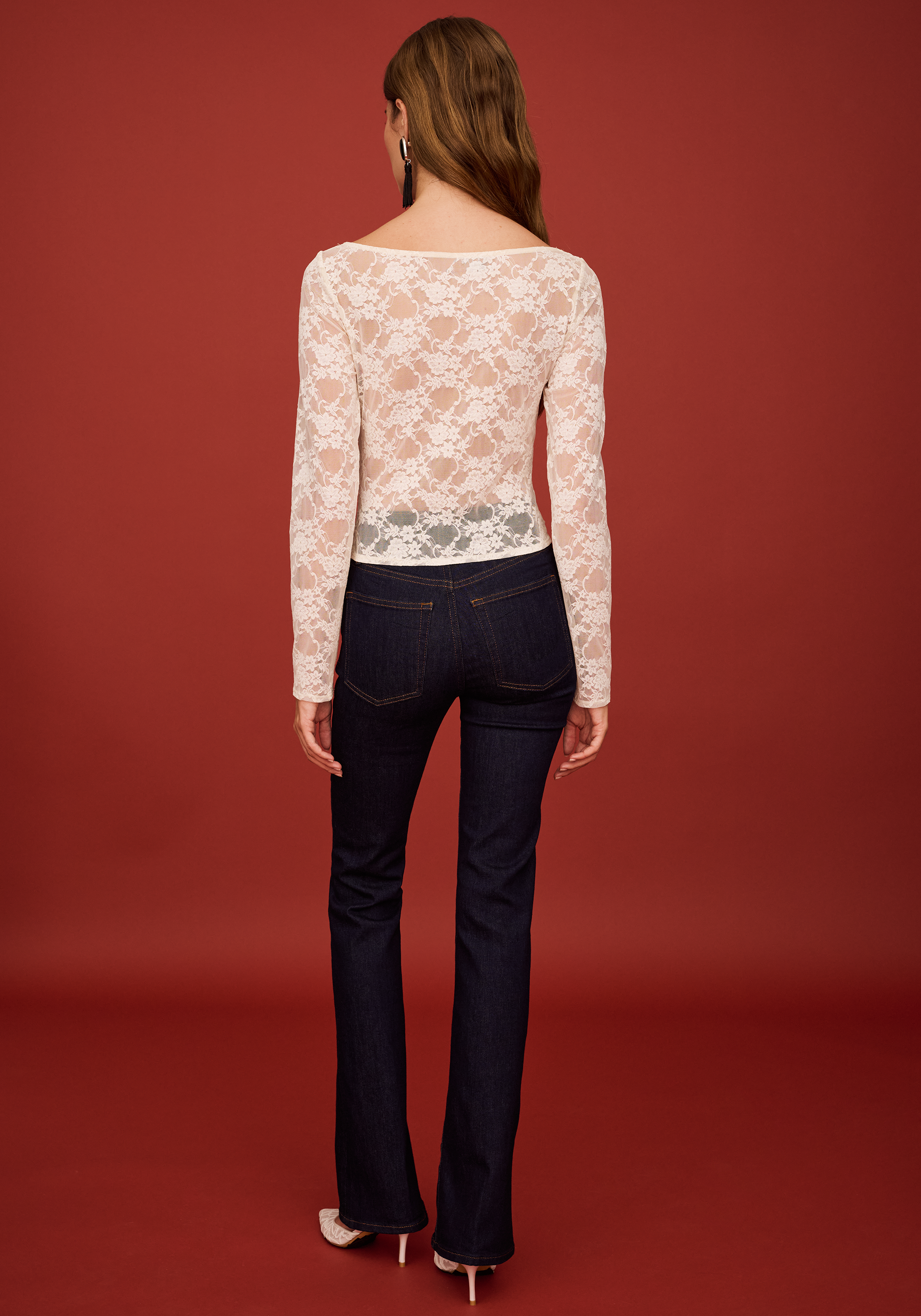 The Rumor Top is a sheer white lace essential with a fitted boatneck that nails that effortless, romantic vibe. Layer it or wear it solo—it works for everything from casual days to dressed-up nights. Cool, versatile, and endlessly styleable.