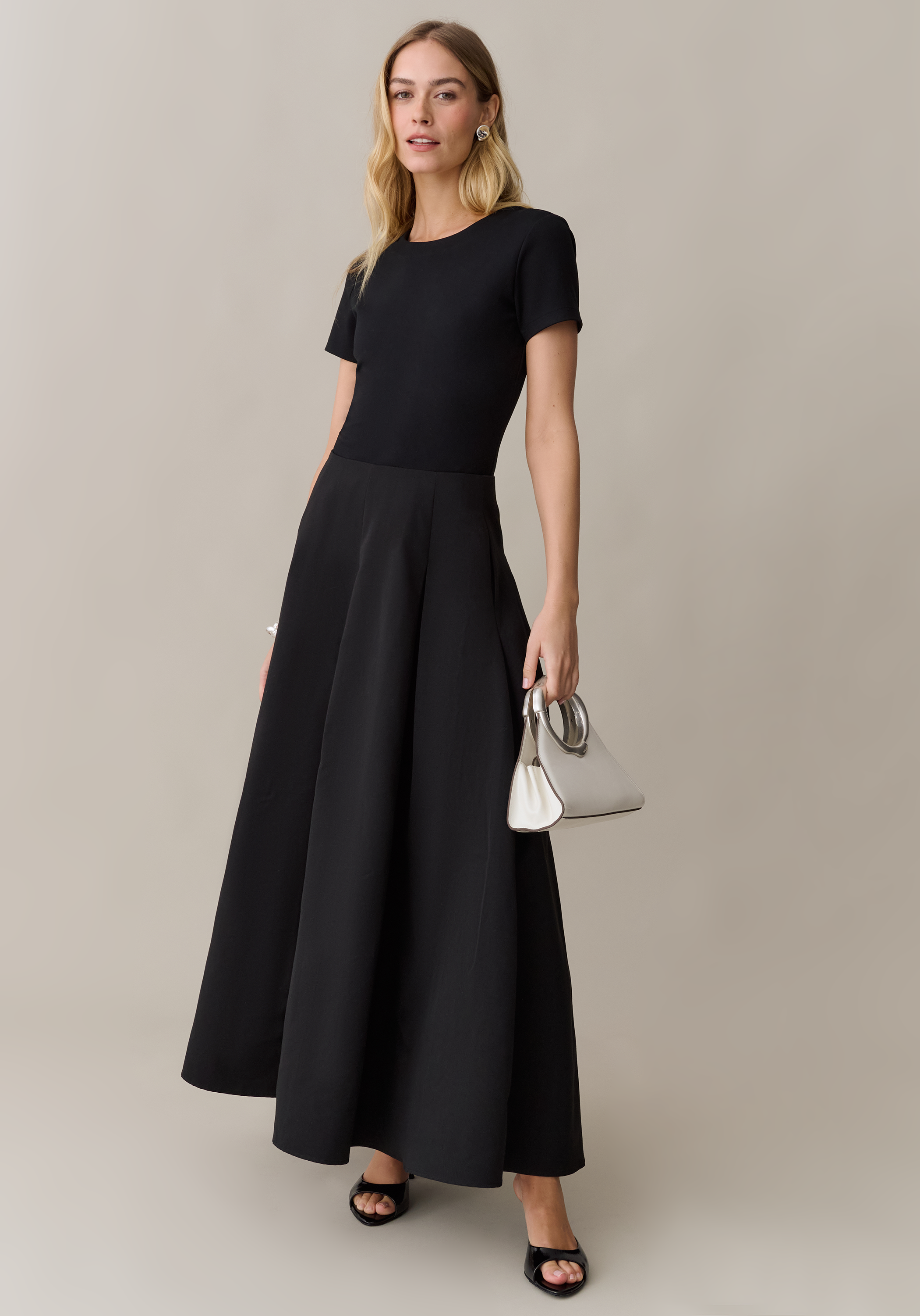 The Irma Dress features a thick knit bodice that flatters and supports, paired with a voluminous skirt that moves beautifully. Practical hidden pockets and clean lines create an effortlessly chic silhouette. Perfect for dressing up or down to fit any occasion.