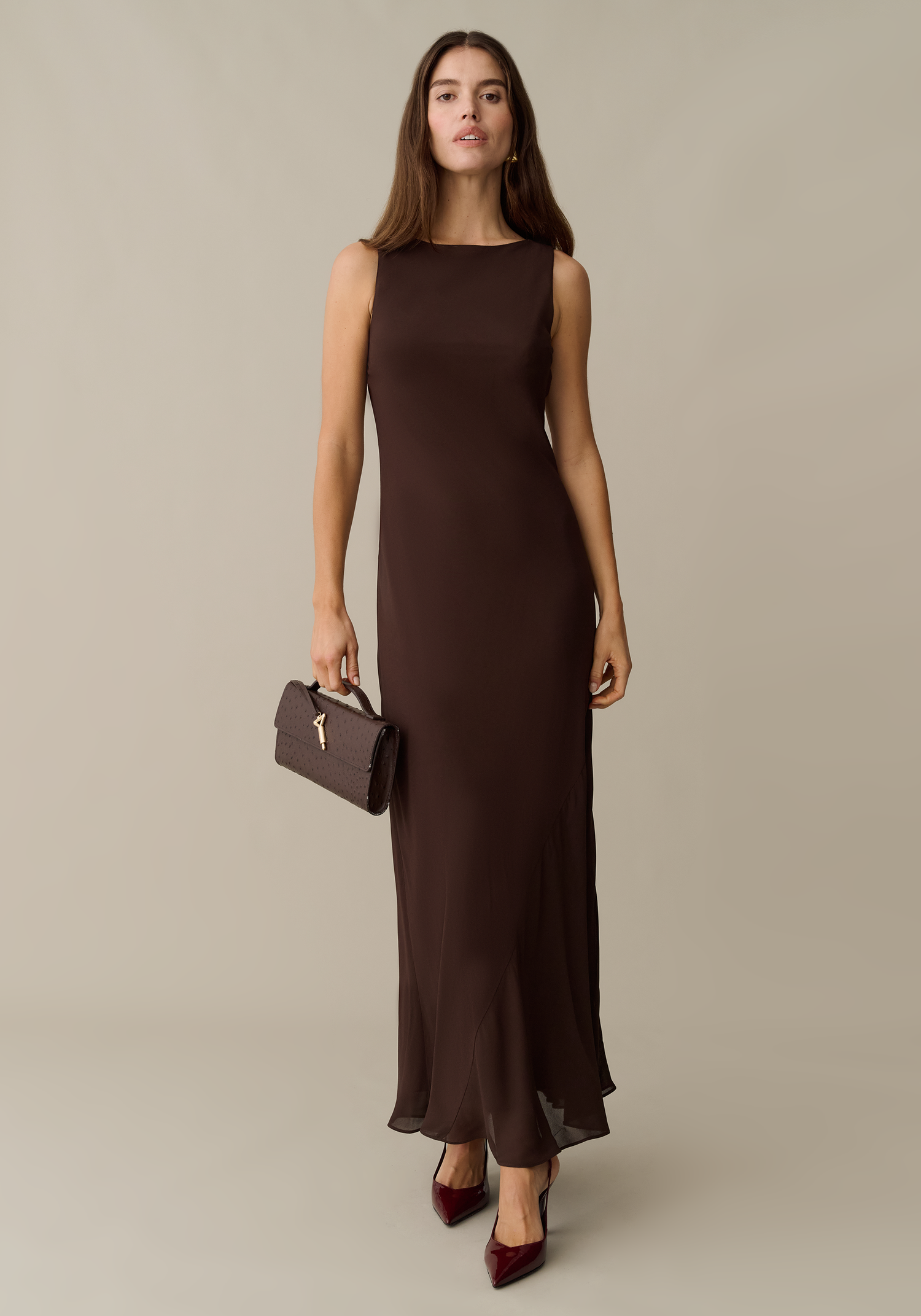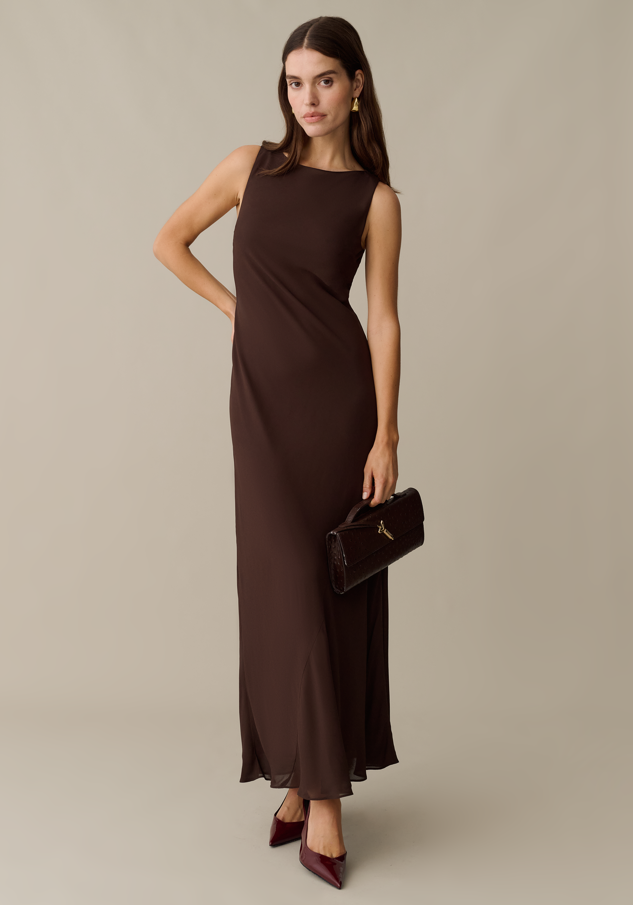 Meet the Winona Dress - a masterclass in minimalist design. The high neckline and airy chiffon fabric create an elegant, uncluttered look that feels both modern and timeless. Effortlessly versatile for any occasion.
