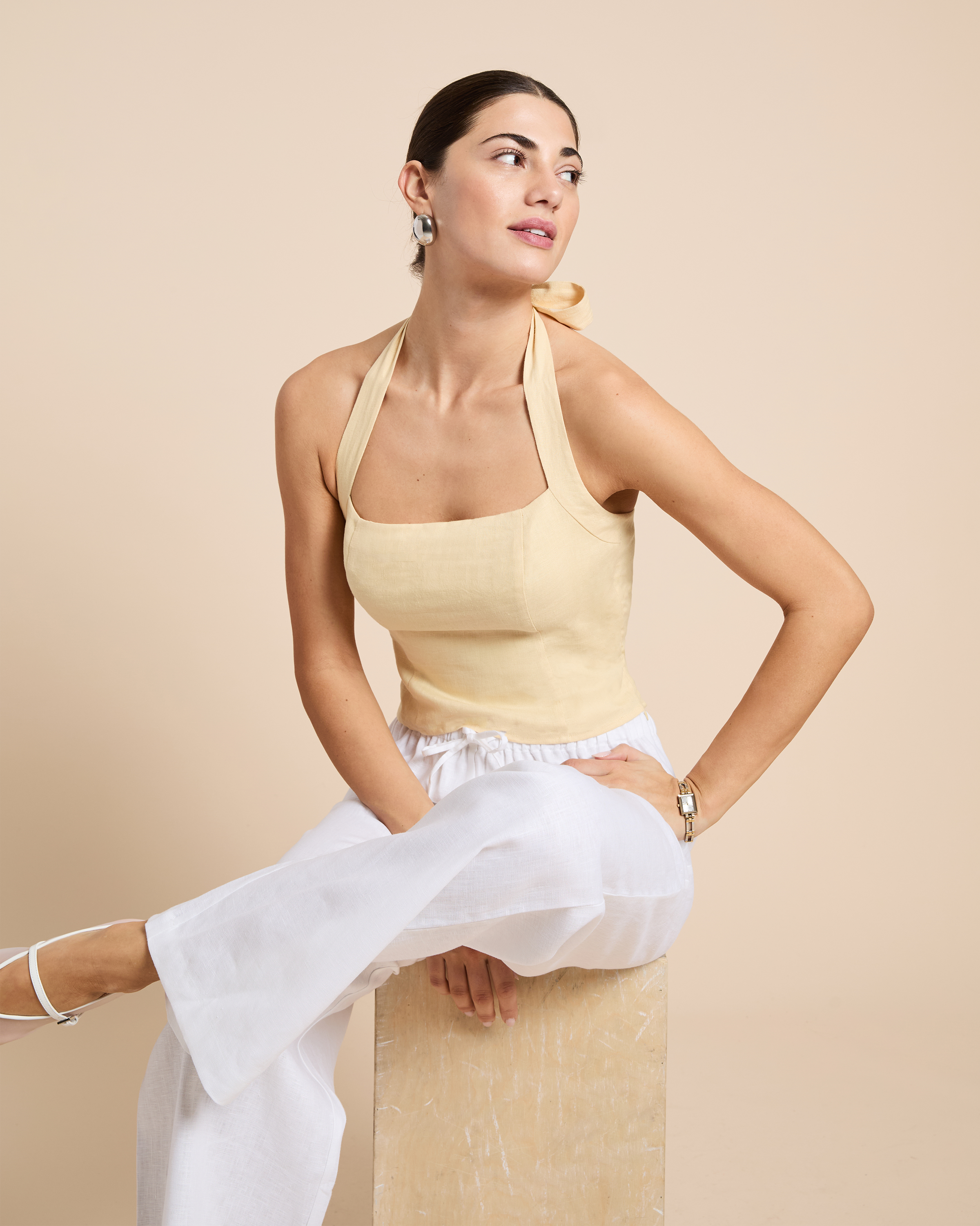 The Paloma Linen Pant is the ultimate blend of cool and comfort. Made with 100% linen, the drawstring waist and relaxed fit provide easy and effortless style for any occasion. Stay cool and comfortable in these versatile pants.