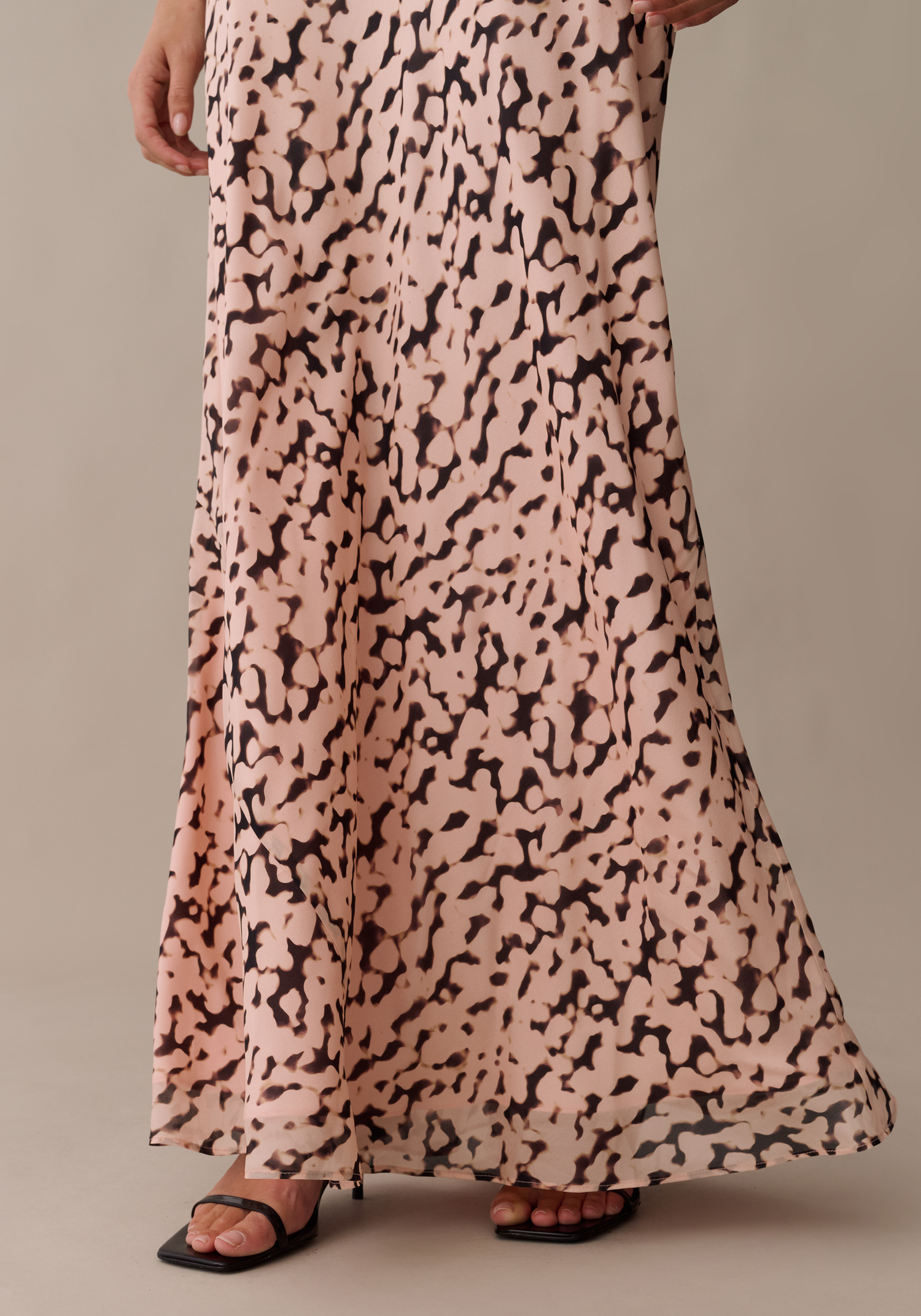 Elevate your event wardrobe with this effortlessly elegant maxi dress. It features a sophisticated high neckline paired with delicate, tiered flutter sleeves for a touch of romantic volume. Crafted from a smooth, flowing fabric, the garment drapes beautifully into a flattering, floor-skimming silhouette perfectly suited for any special occasion.