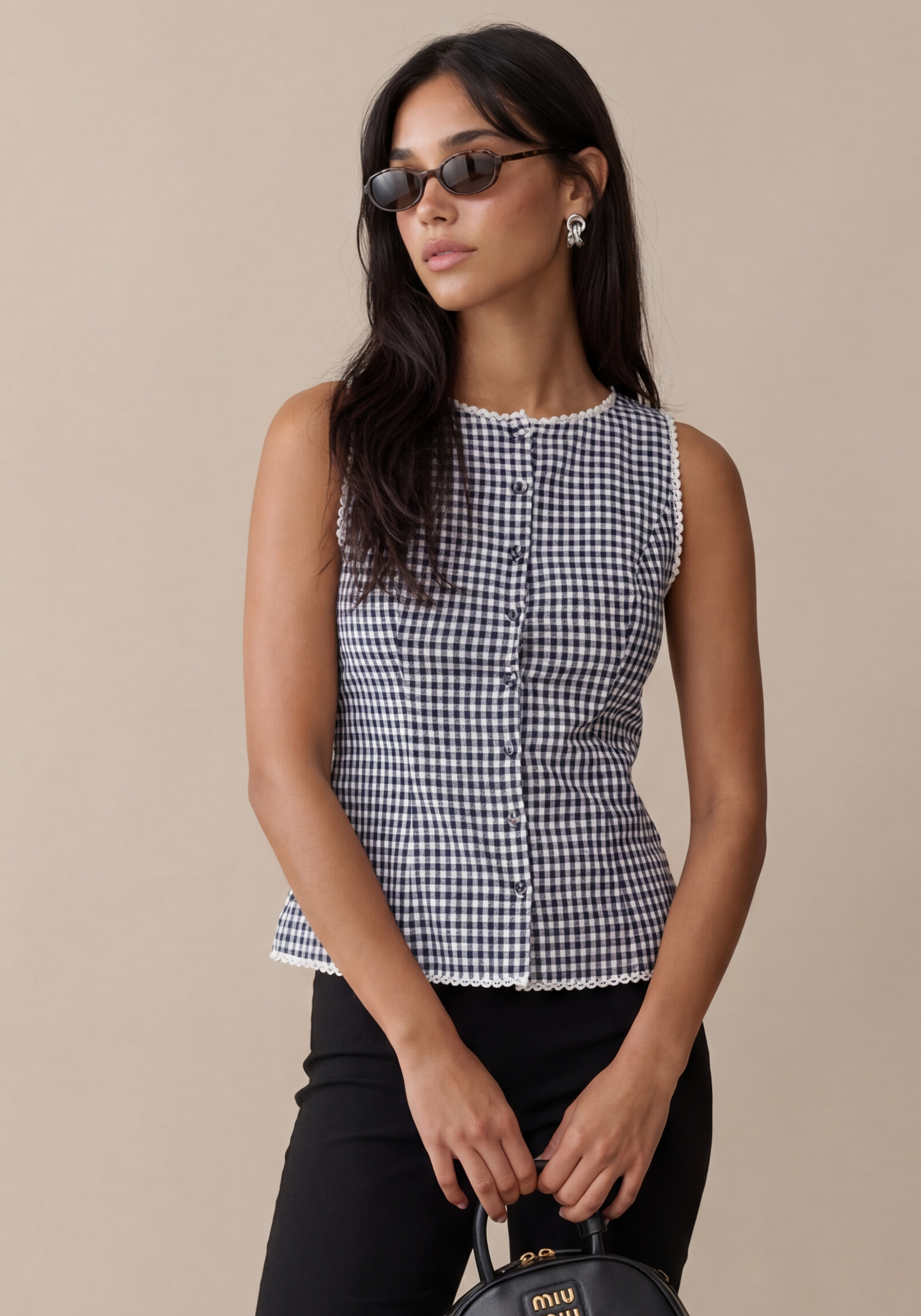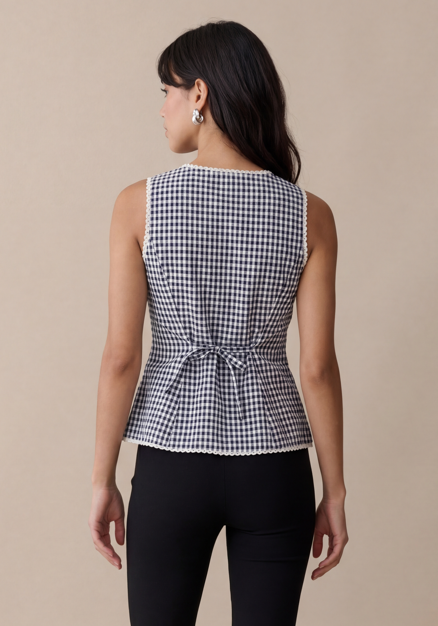 The Micah Top boasts a charming high neckline and adorable lace trim, perfect for adding a touch of elegance to any outfit. Made from a comfortable cotton linen blend, this top also features front buttons and a back tie for an adjustable fit. Elevate your style with this versatile and chic top.