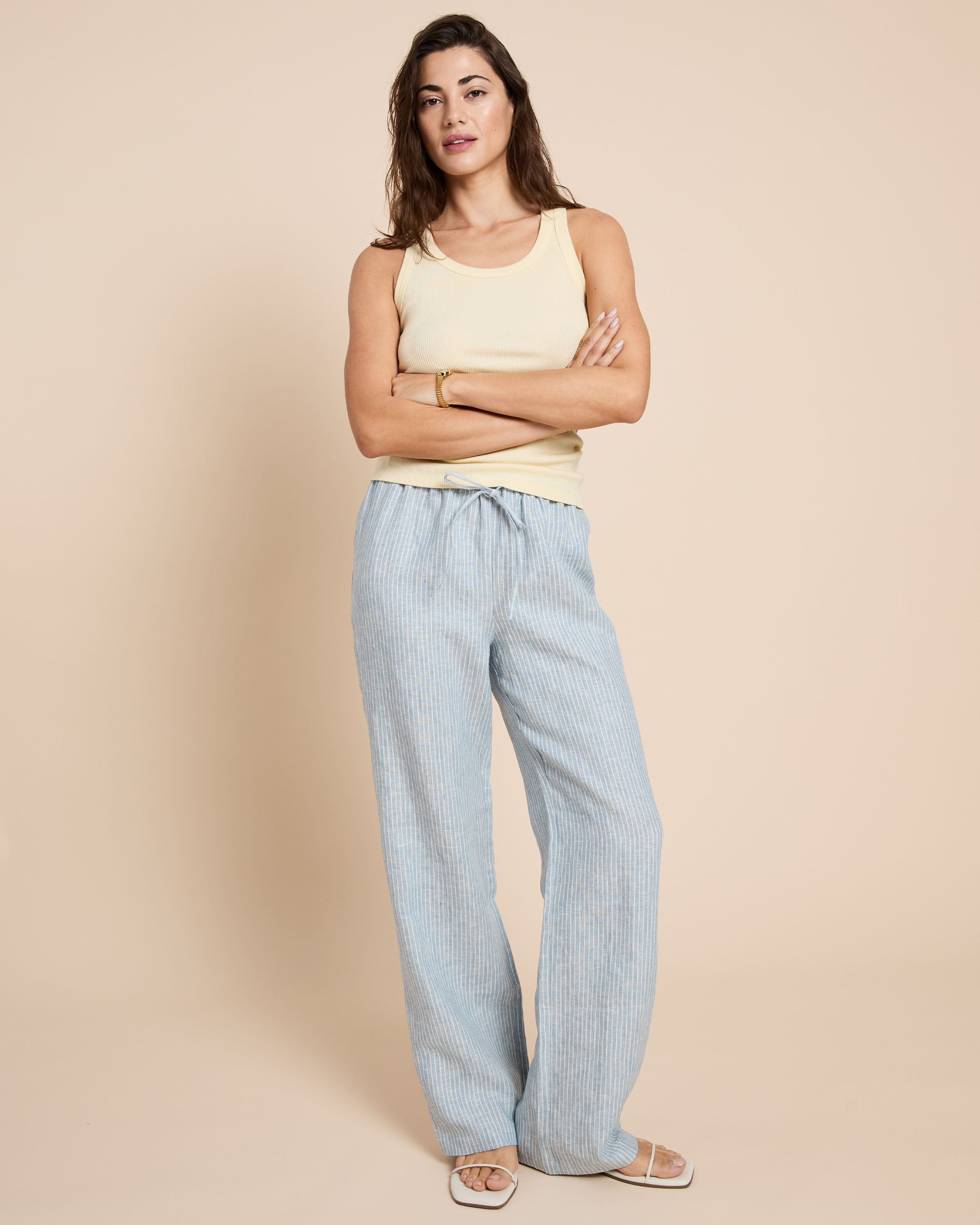 The Paloma Linen Pant is the ultimate blend of cool and comfort. Made with 100% linen, the drawstring waist and relaxed fit provide easy and effortless style for any occasion. Stay cool and comfortable in these versatile pants.