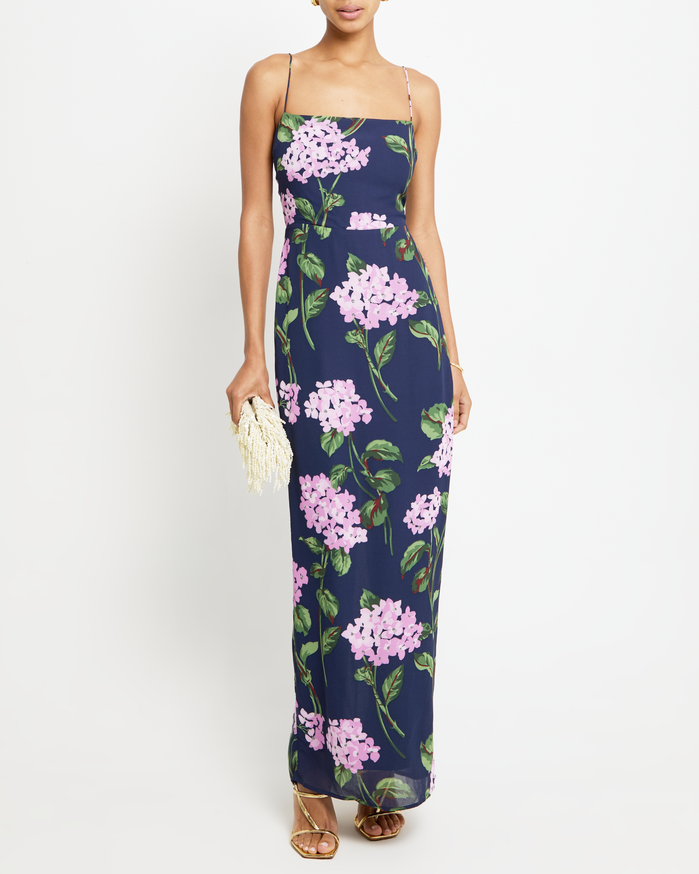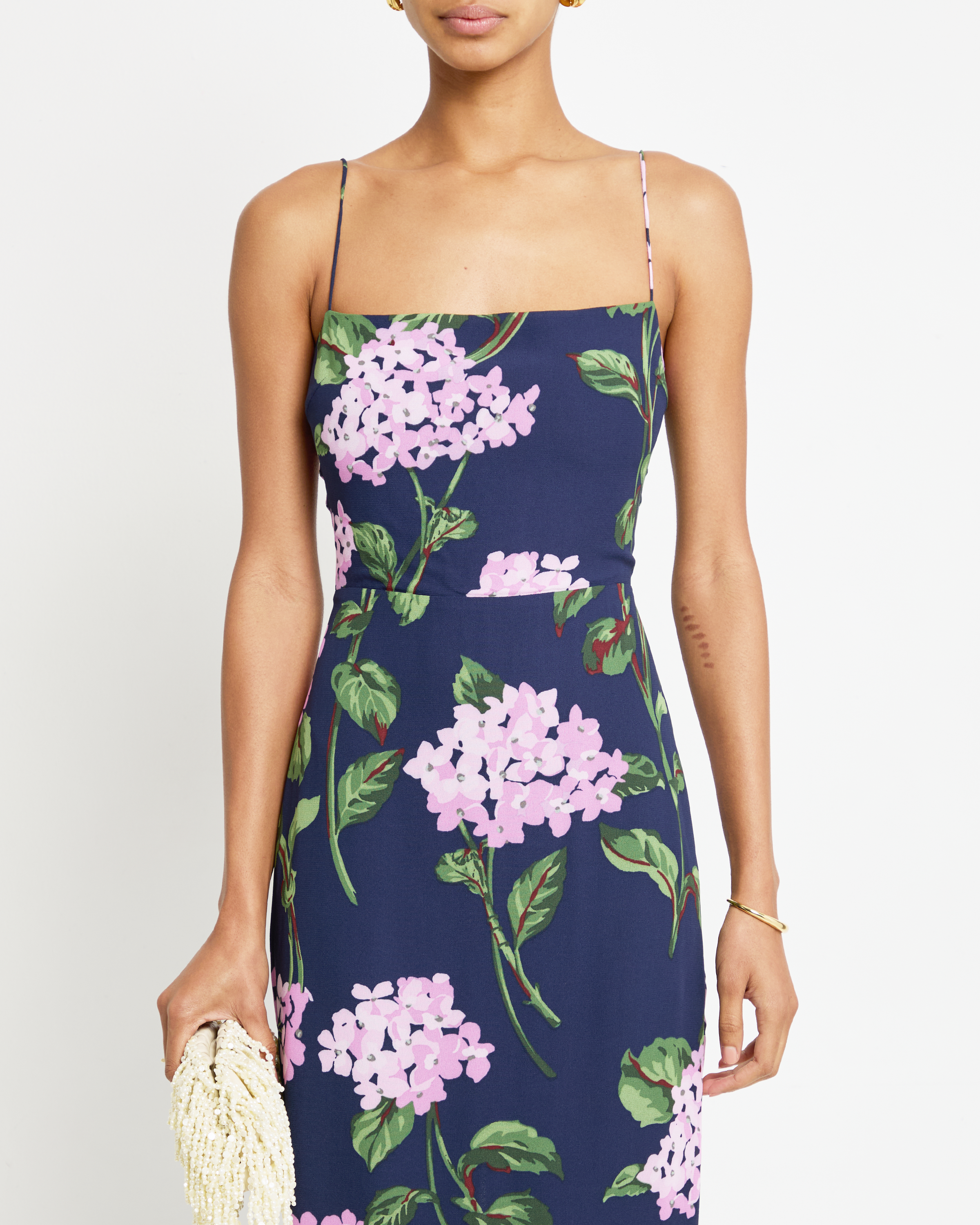 Effortlessly chic and sophisticated, the Aviva Dress boasts a sheath silhouette, back slit, thin straps, and straight neckline for a timeless and elegant look. Perfect for any occasion, this dress is both simple and sleek, making it a versatile wardrobe staple.