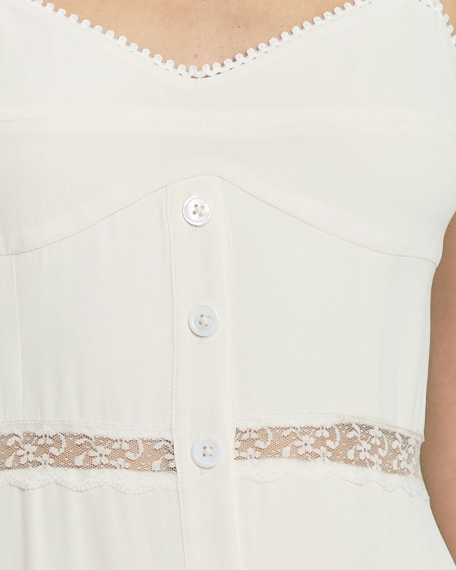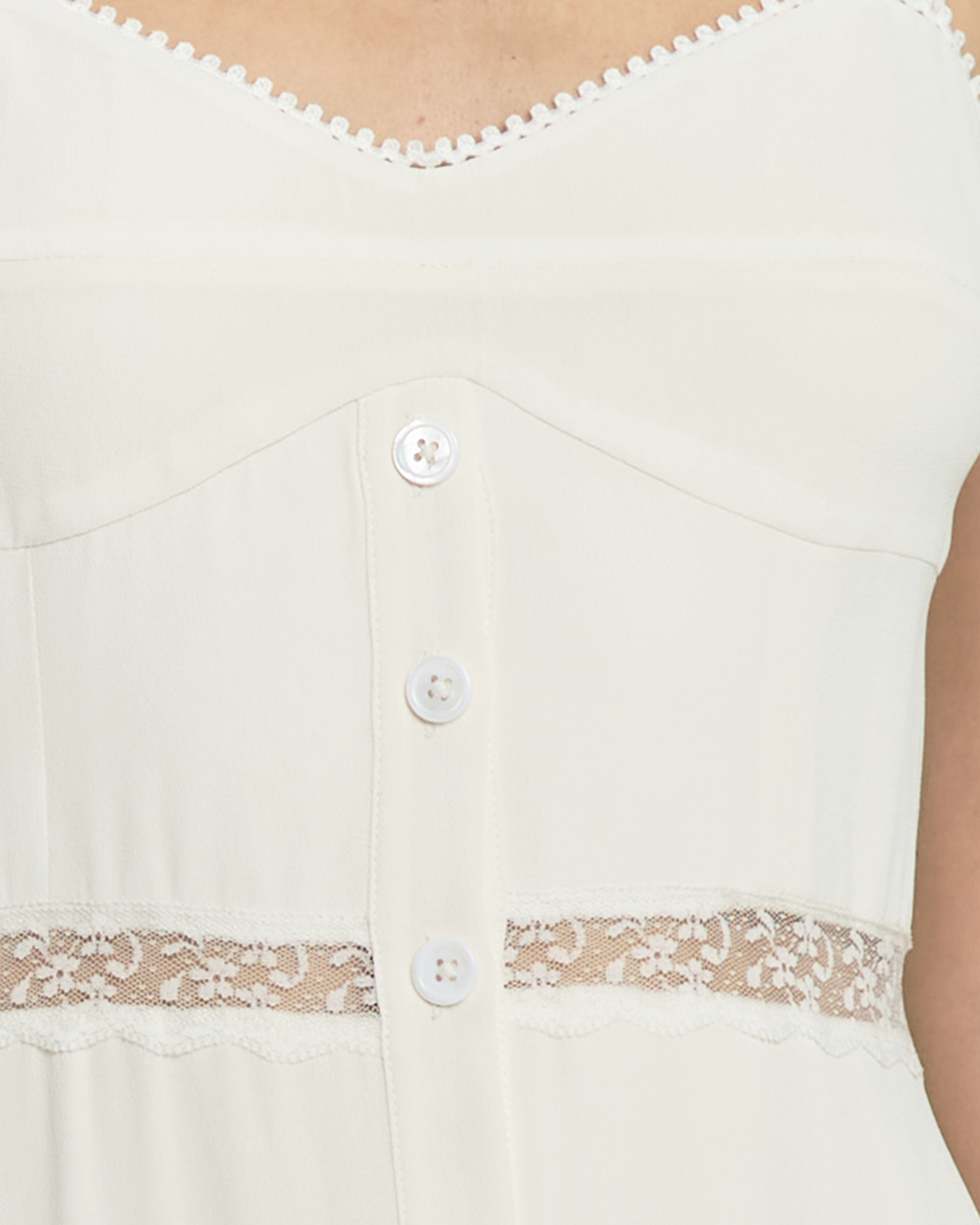 Upgrade your wardrobe with the Katelina Dress. Featuring an easy button-up design, this dress is made with gorgeous sheer lace details and paneling for a delicate and romantic feel.