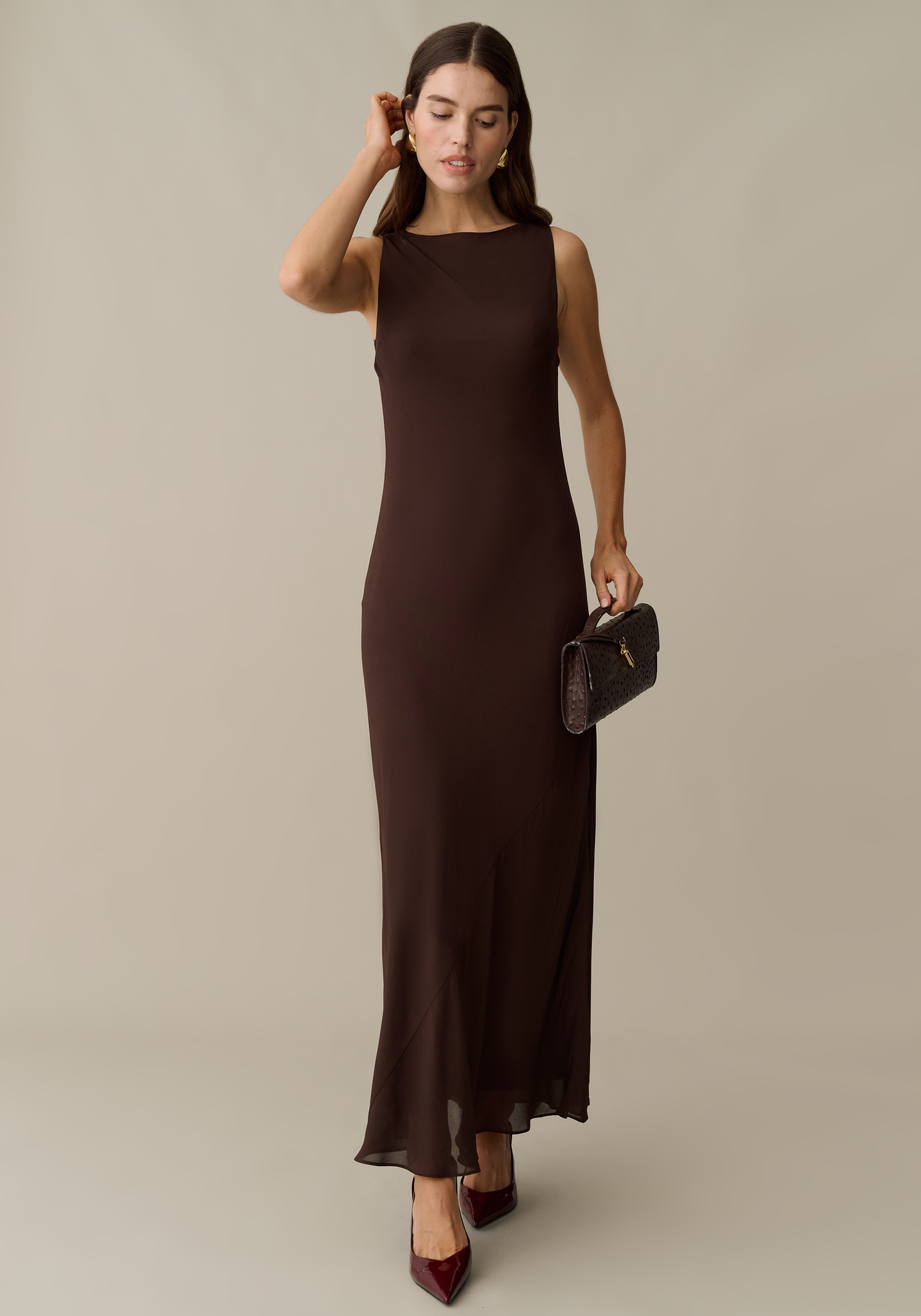 Meet the Winona Dress - a masterclass in minimalist design. The high neckline and airy chiffon fabric create an elegant, uncluttered look that feels both modern and timeless. Effortlessly versatile for any occasion.
