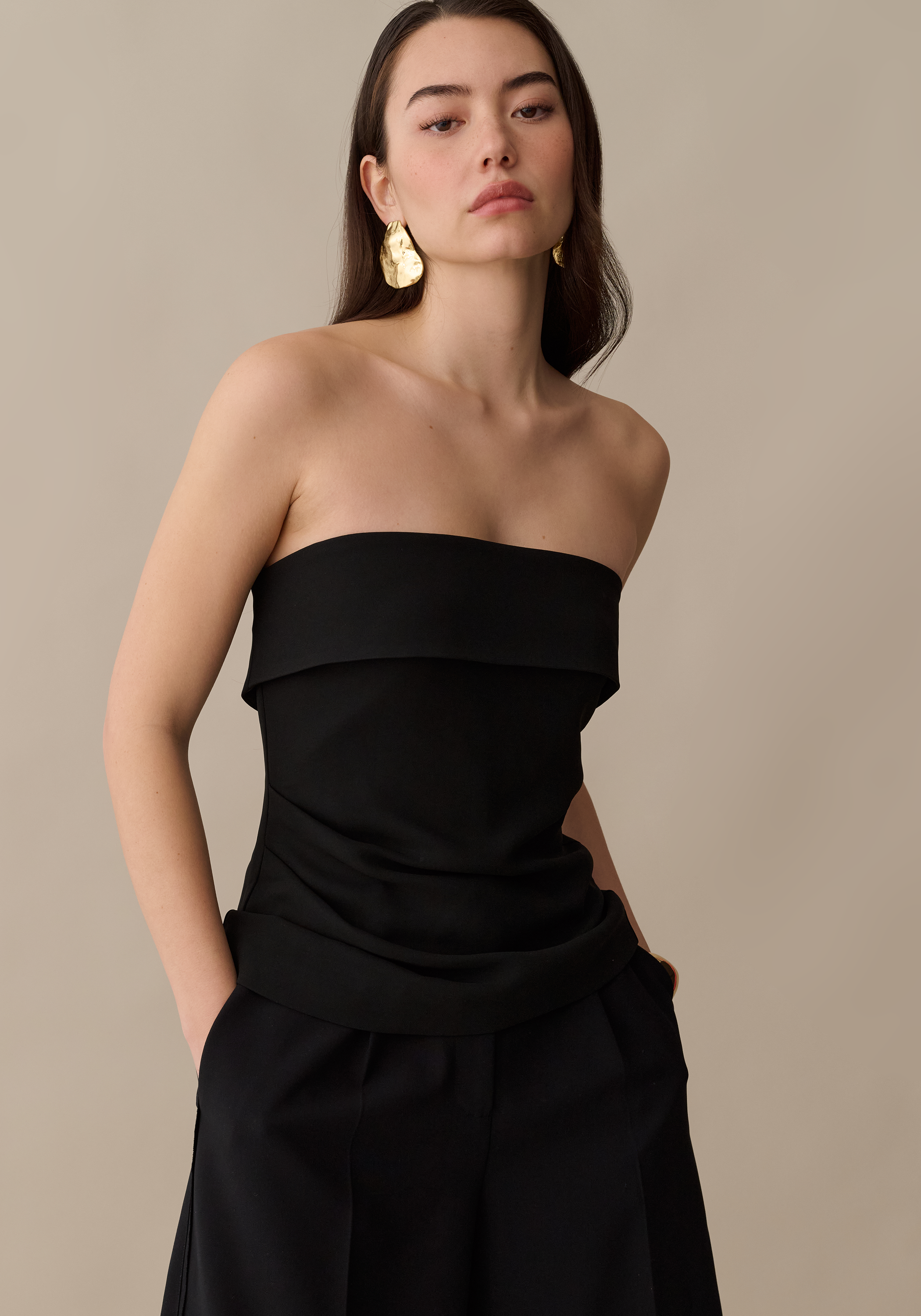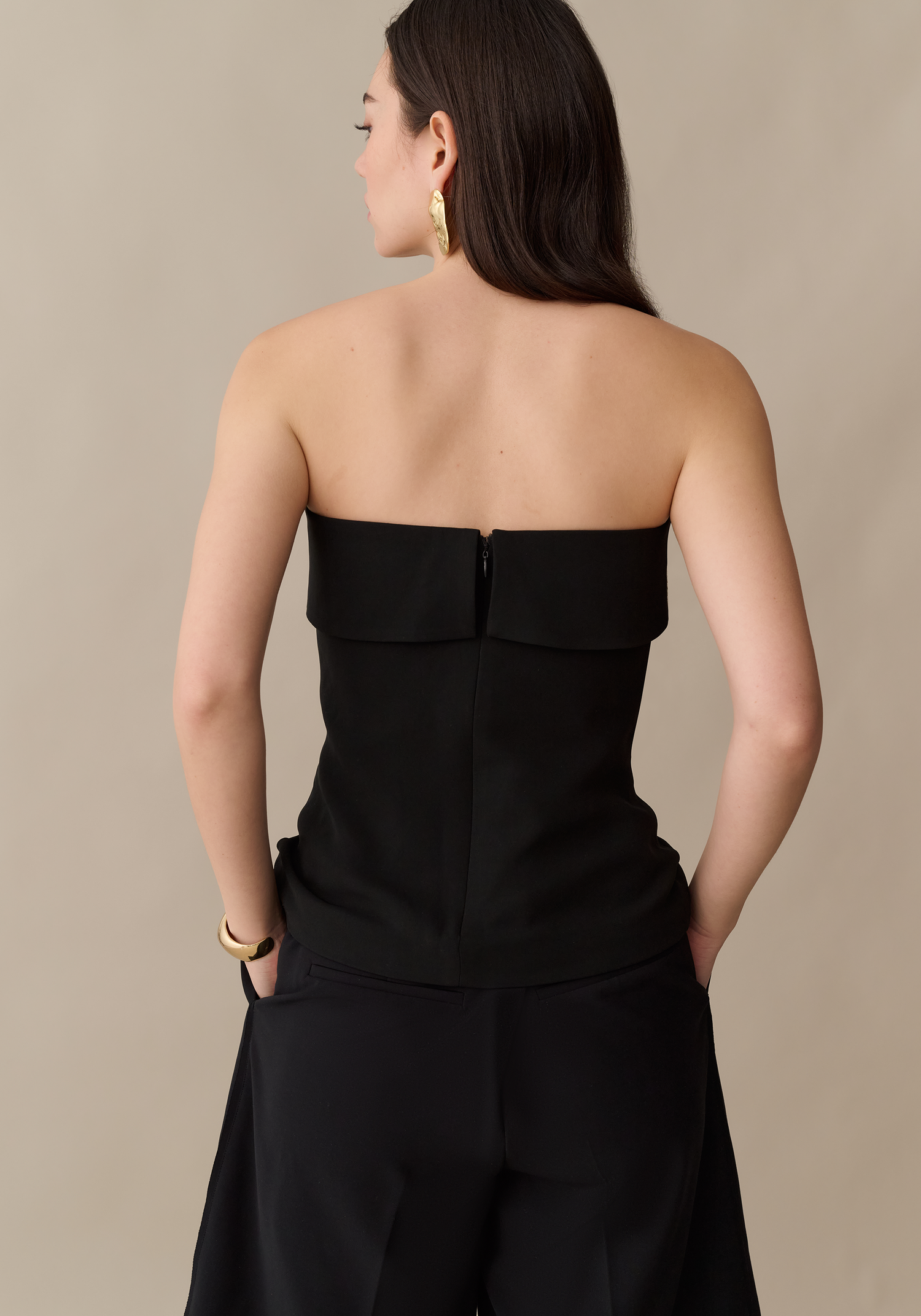 The Clover Top is a wardrobe staple with a structured strapless cut and back zipper for a seamless finish. Its sleek silhouette pairs effortlessly with everything—wear it solo for a polished look or layer it under your favorite jacket. Simple, refined, and endlessly versatile.