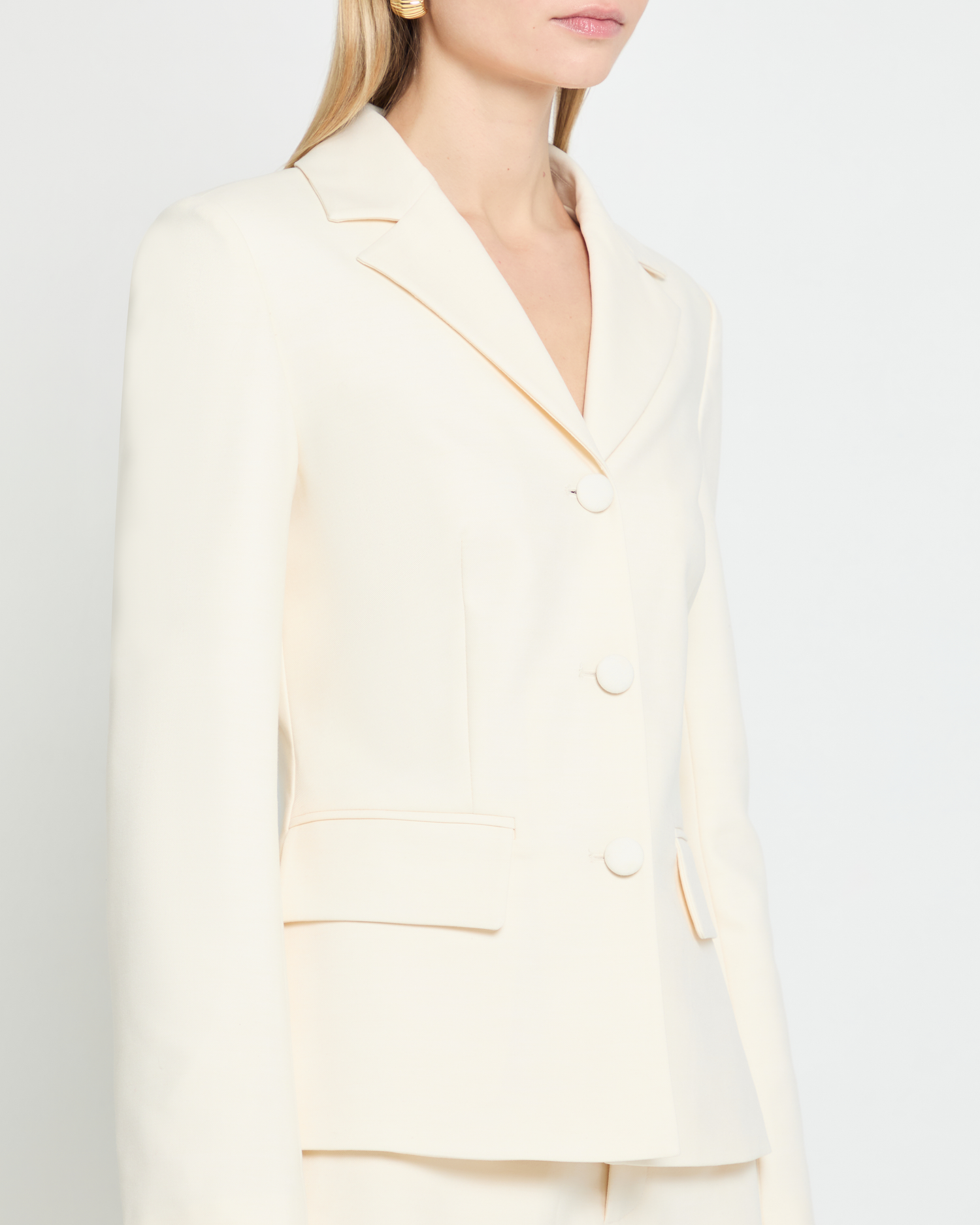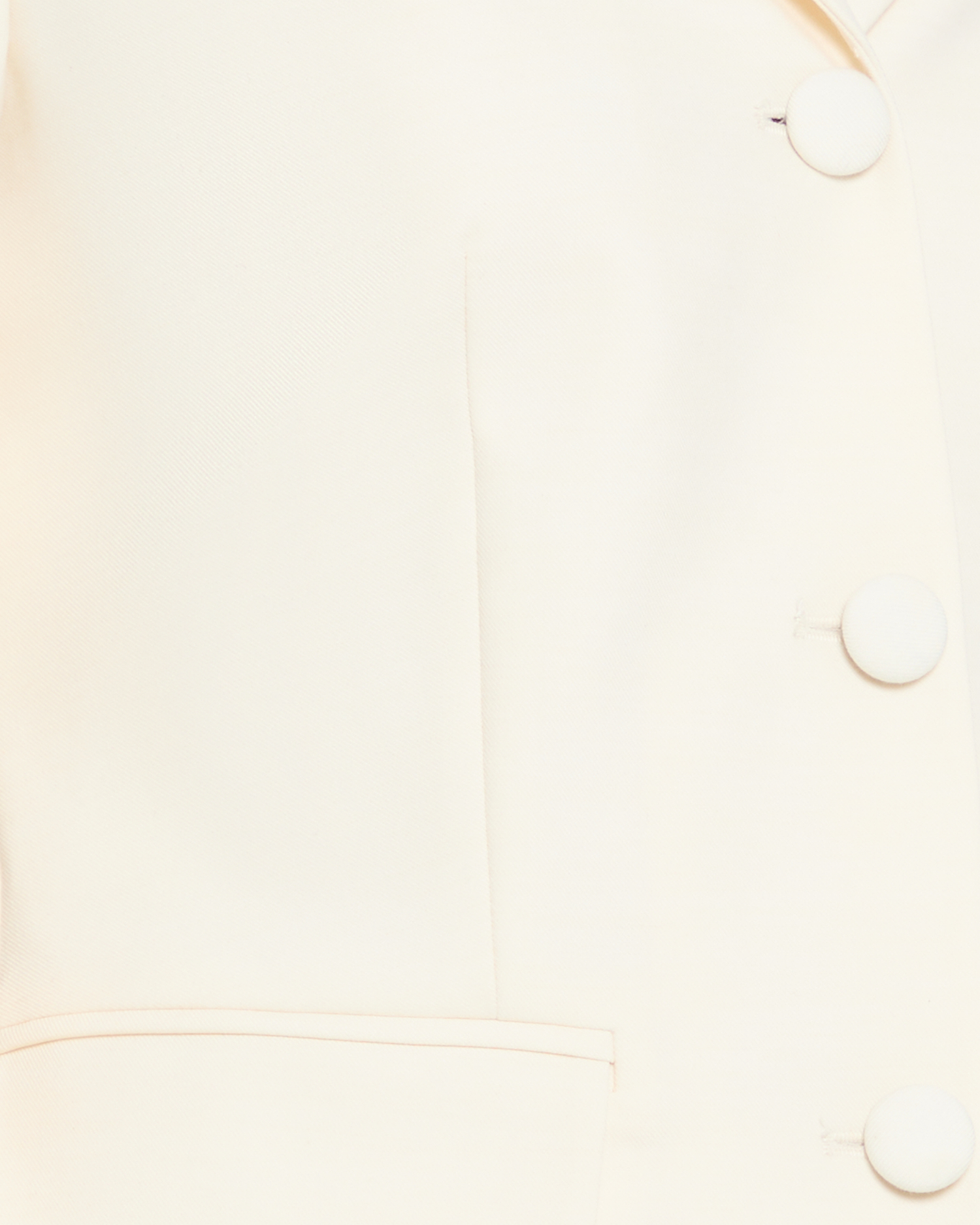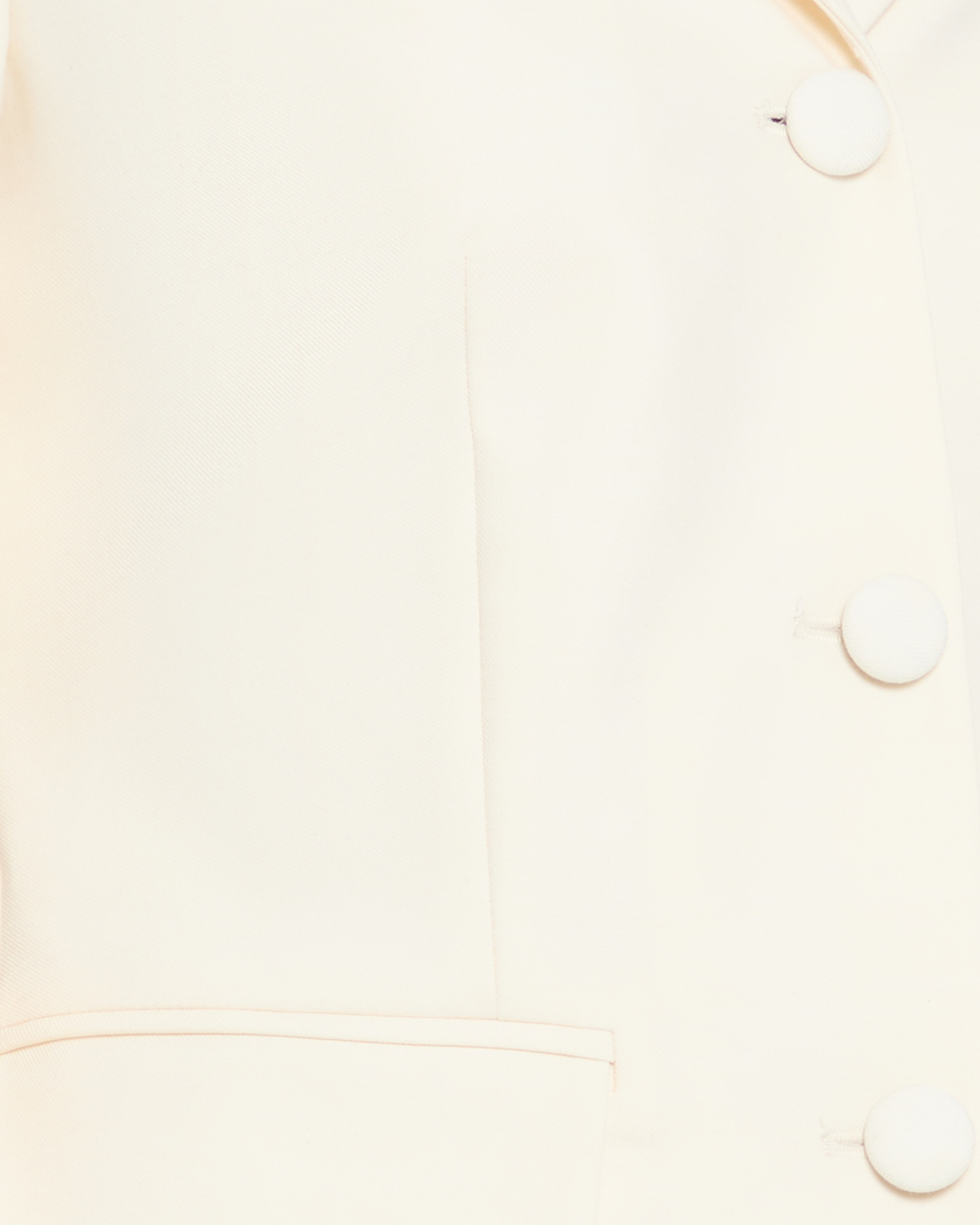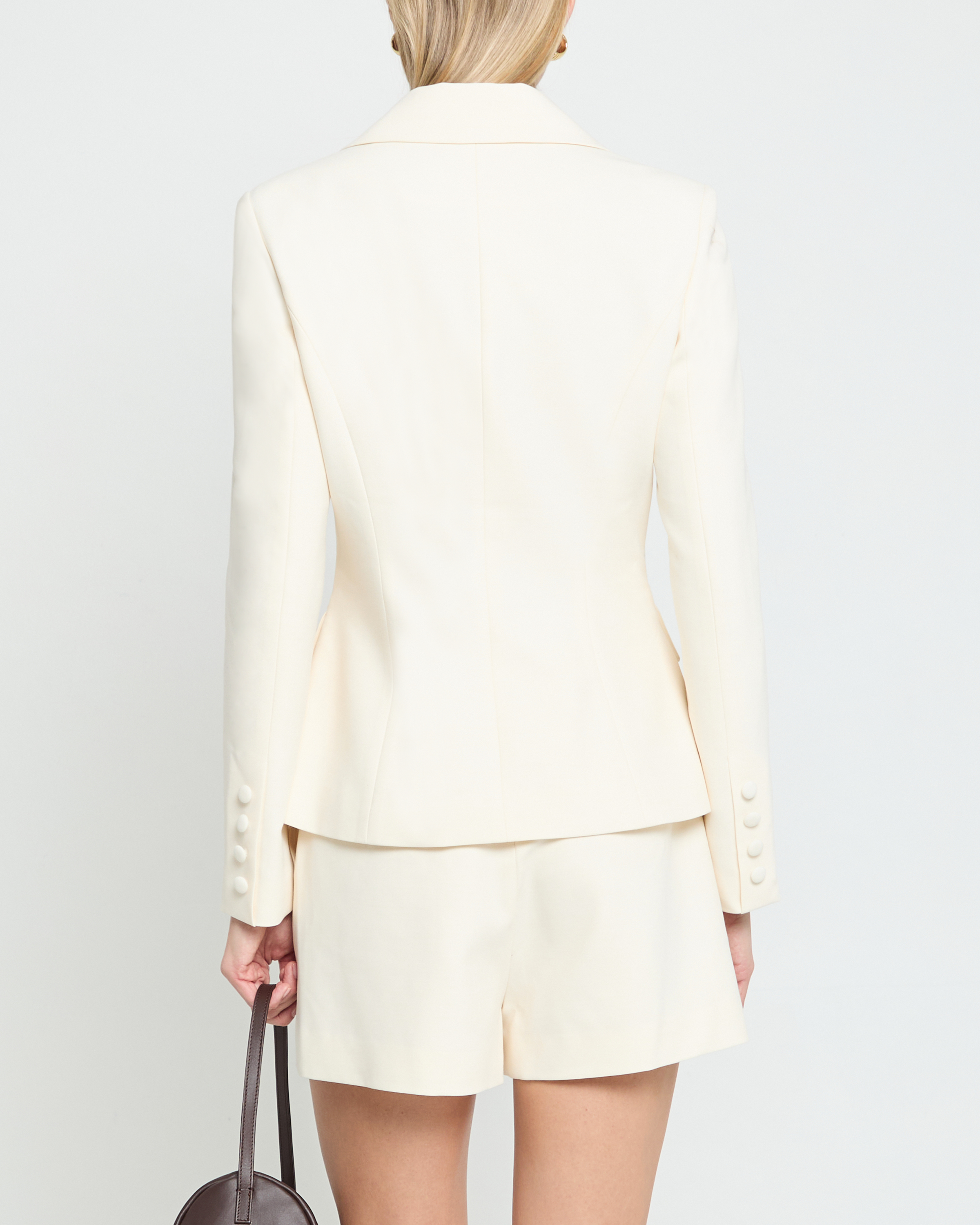 Clean and chic, the Linda Blazer is done in a sophisticated cream hue with covered buttons for an extra elevated look. The fitted silhouette is oh so flattering and pairs perfectly with the matching shorts for the ultimate polished outfit.