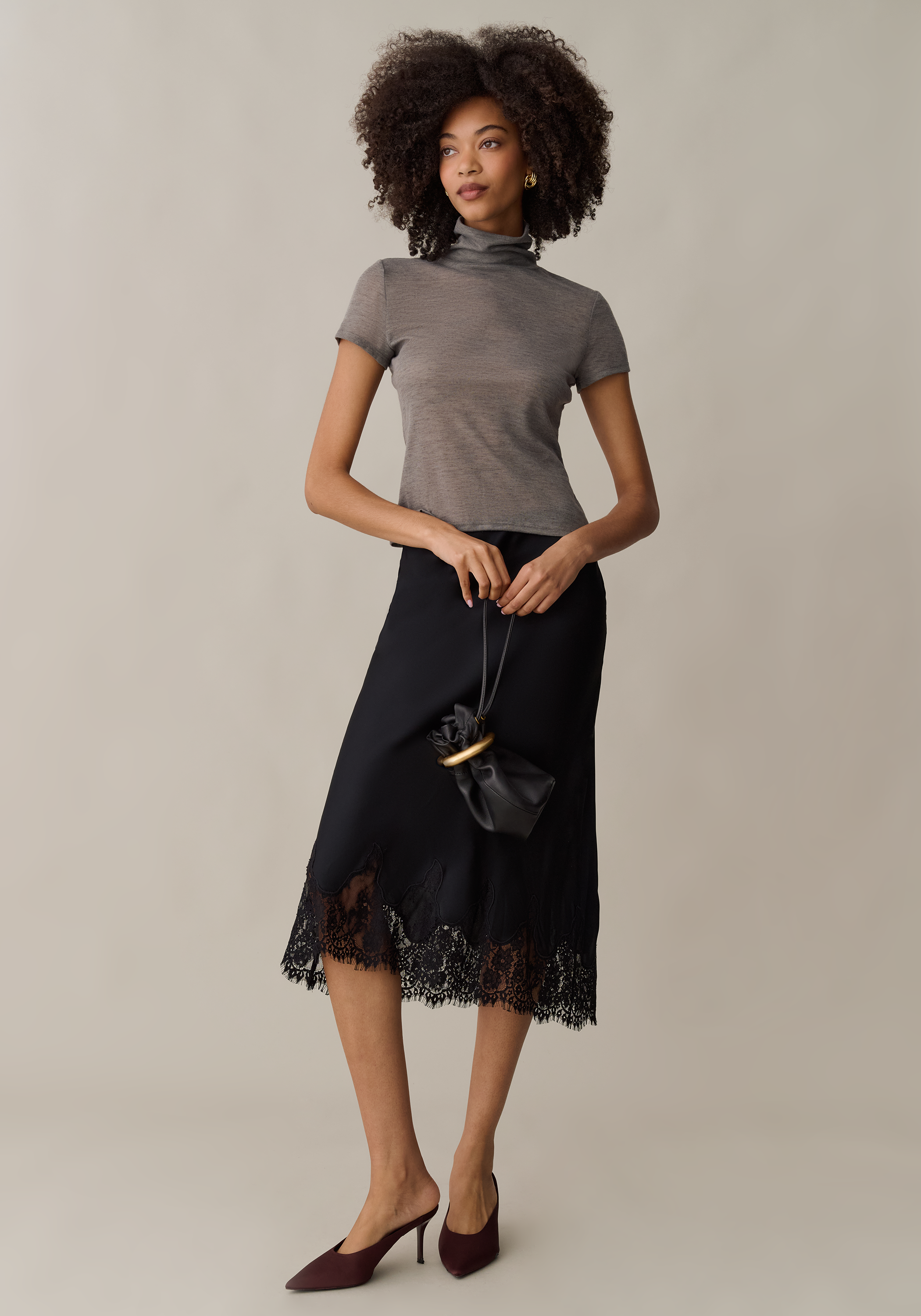 Silky smooth and beautifully detailed, the Evren Skirt features delicate lace trim for a romantic feel. The practical elastic waist keeps you comfortable while its sophisticated design can go seamlessly from day to evening wear.