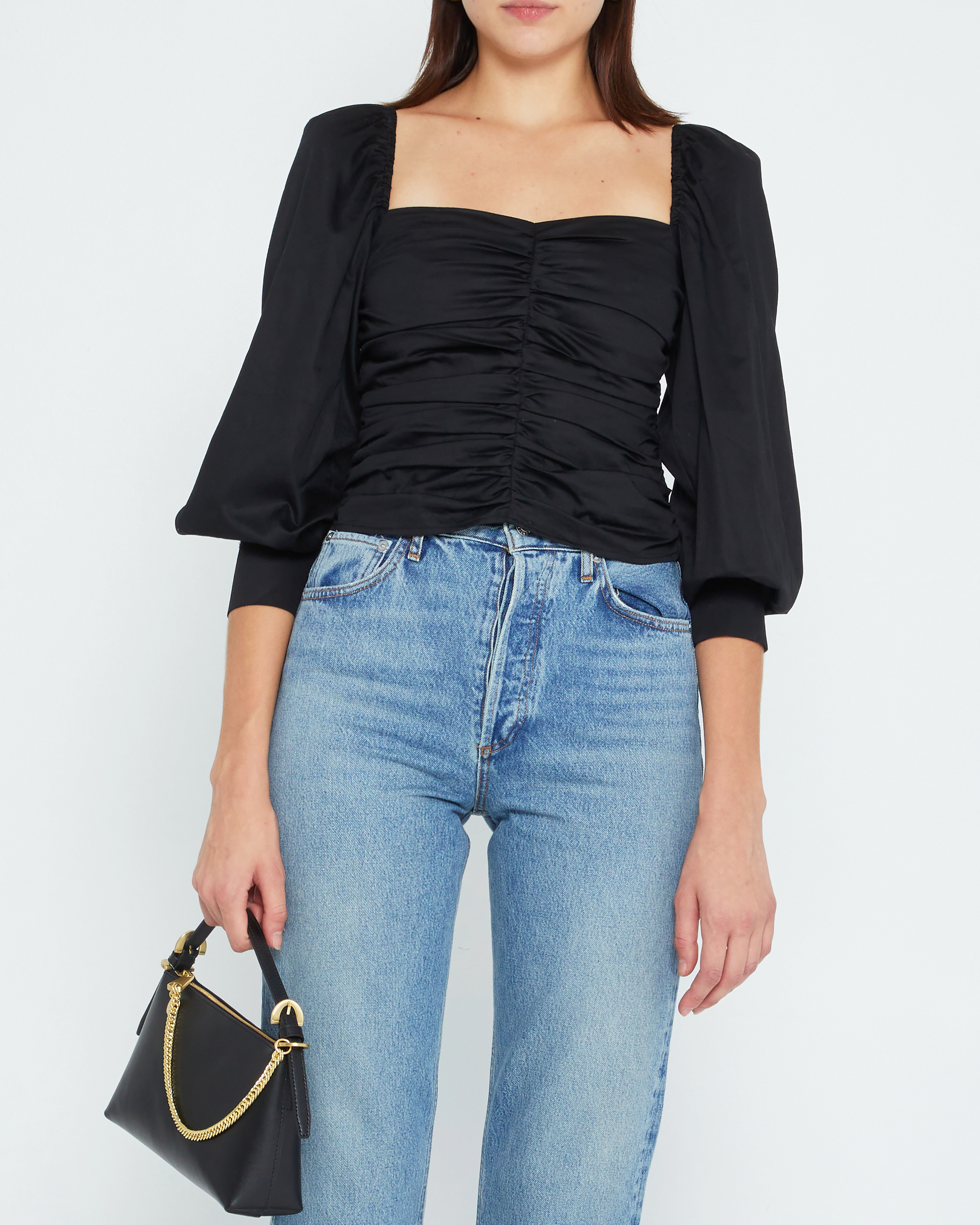 The ruched bodice and defined cuffs create an easy and chic silhouette for this blouse. Made from 100% airy cotton.