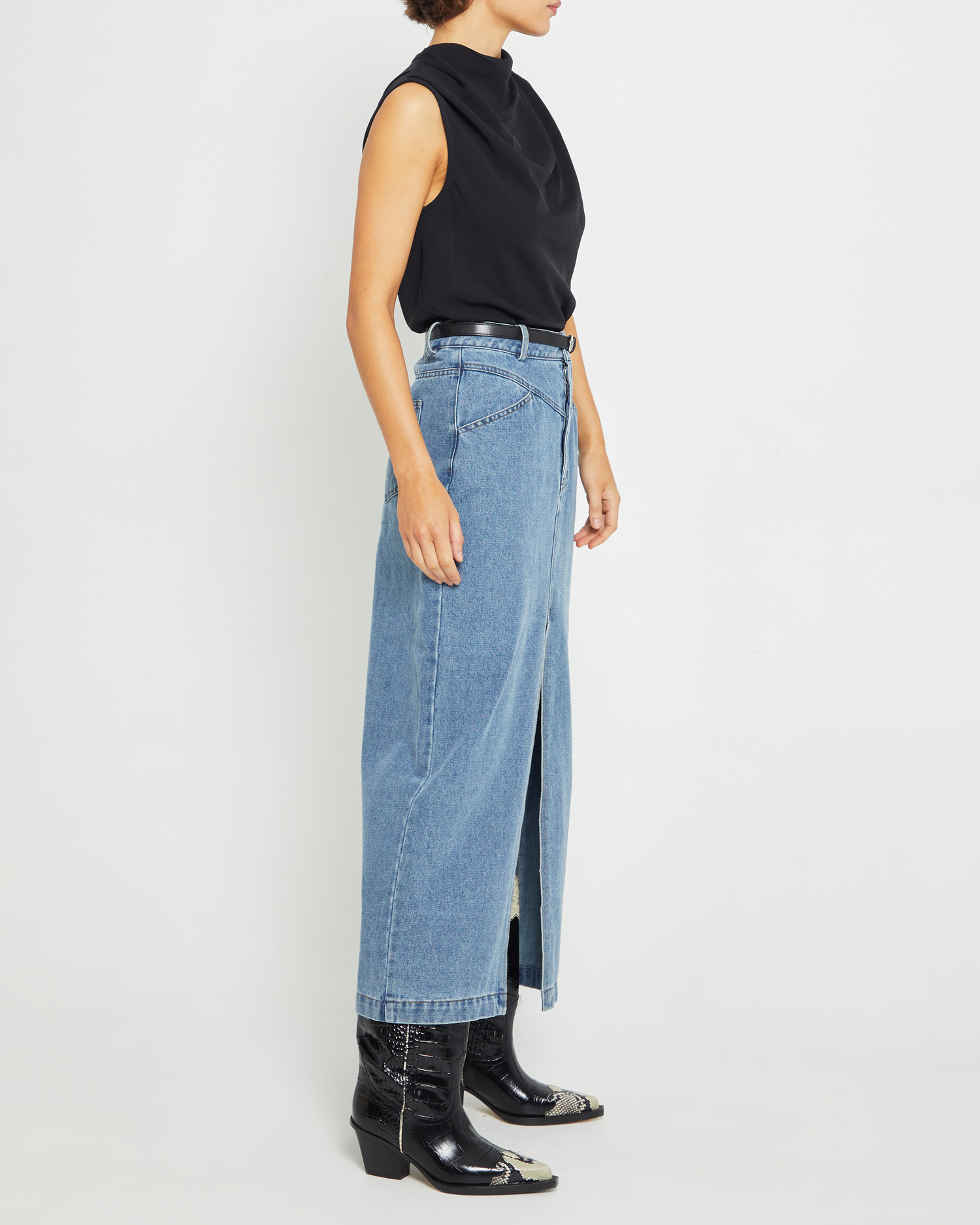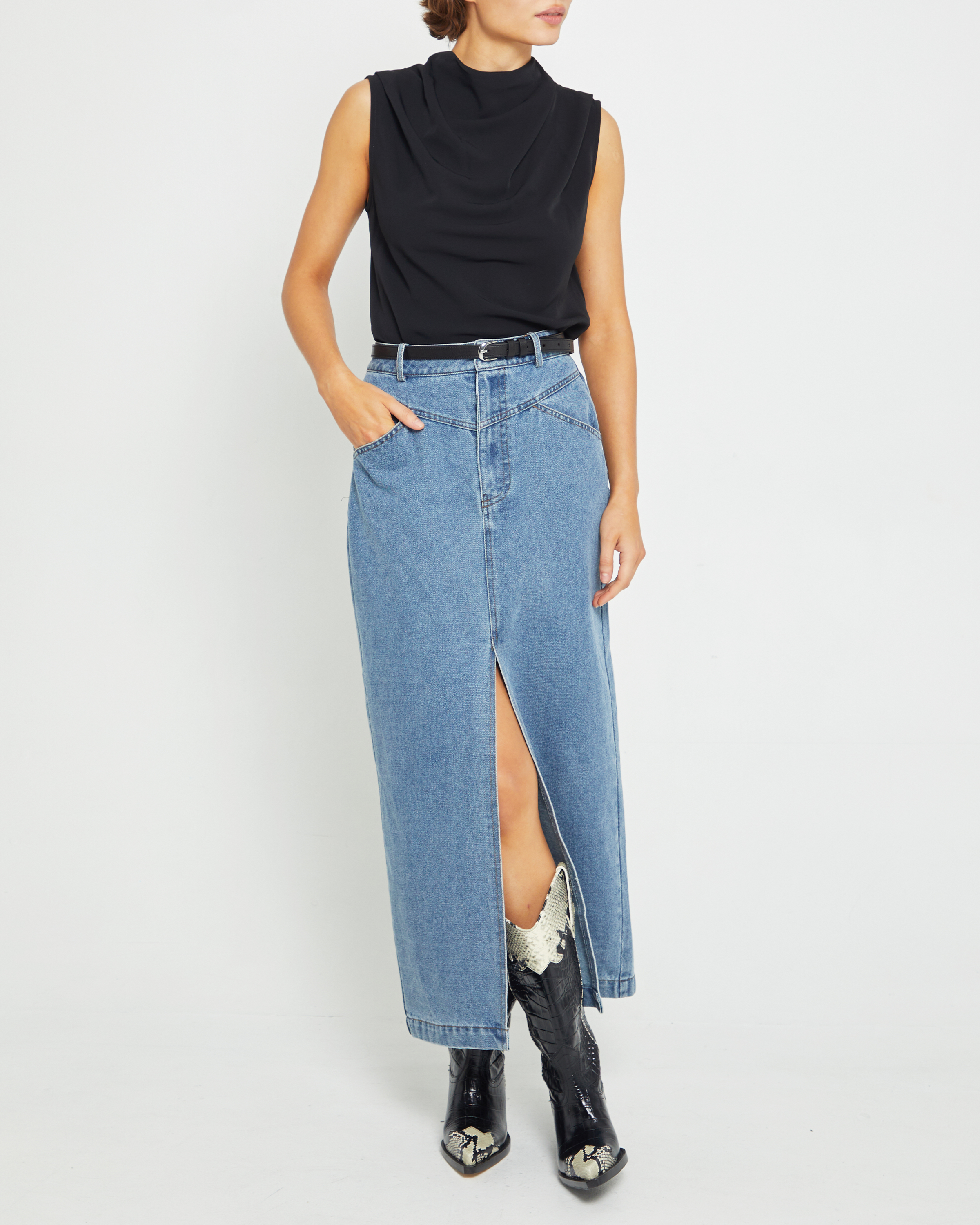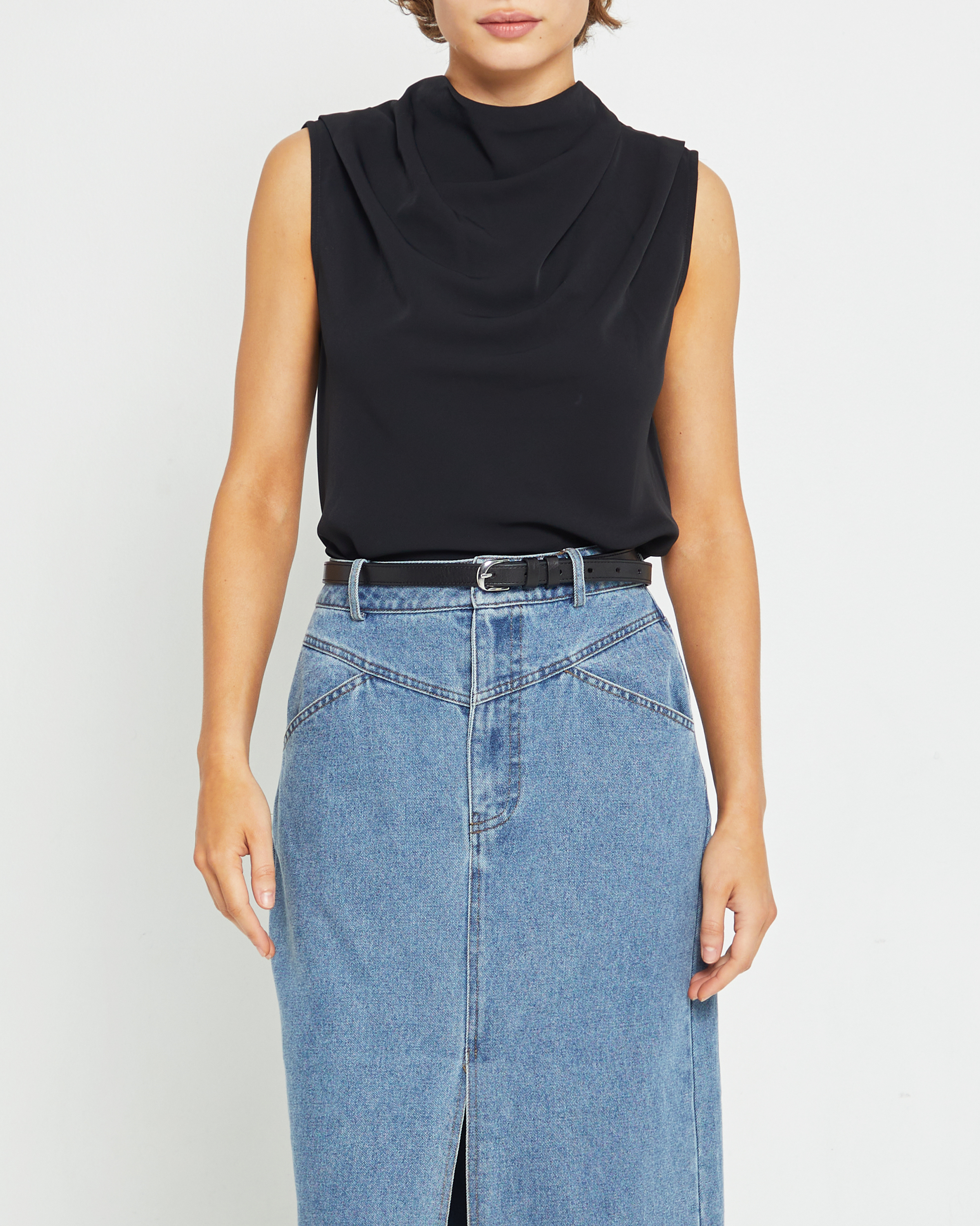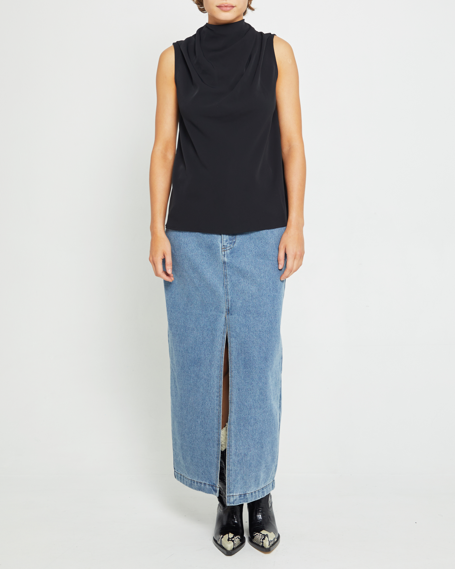 Crafted from a silky material, this top features a high neck and relaxed, drapey fit, giving it a sophisticated look and feel. Perfect for any occasion, you'll always look effortlessly chic in the Elena Top.
