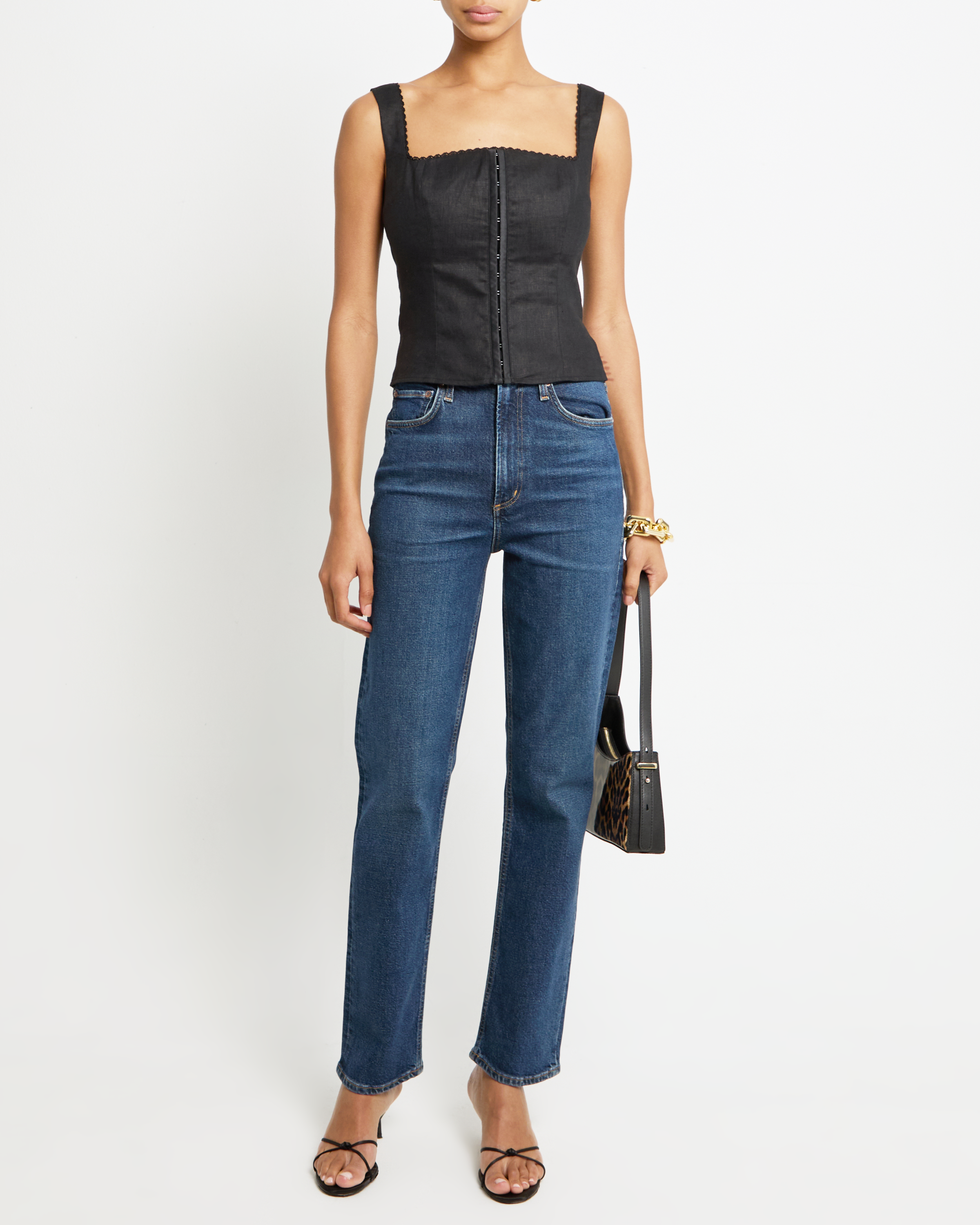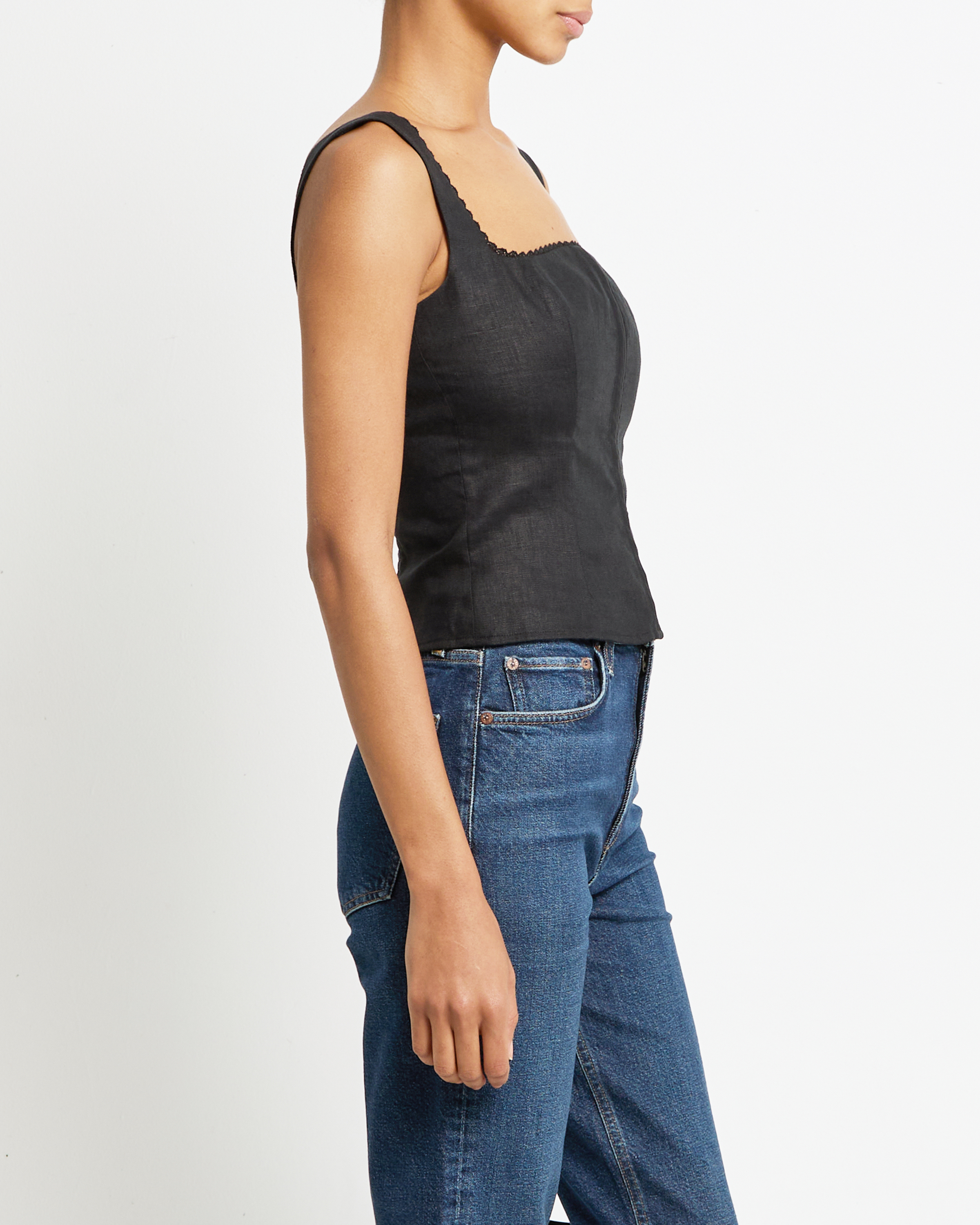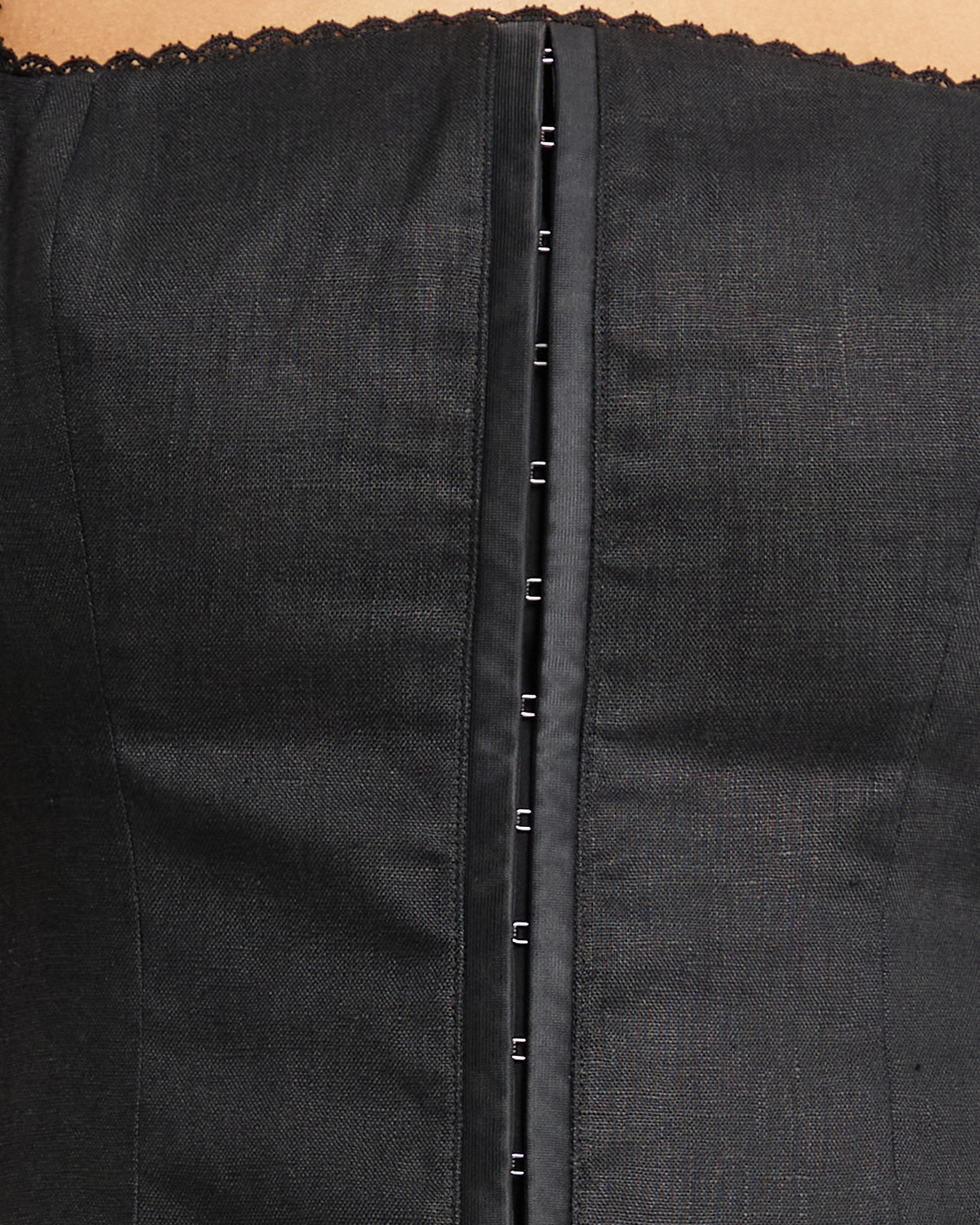 Expertly designed for comfort and style, the Halley Linen Top features delicate lace trim and thick straps for a secure fit. The fitted bodice flatters your figure, while the front fastener details add a touch of sophistication. Elevate your wardrobe with this versatile and chic top.