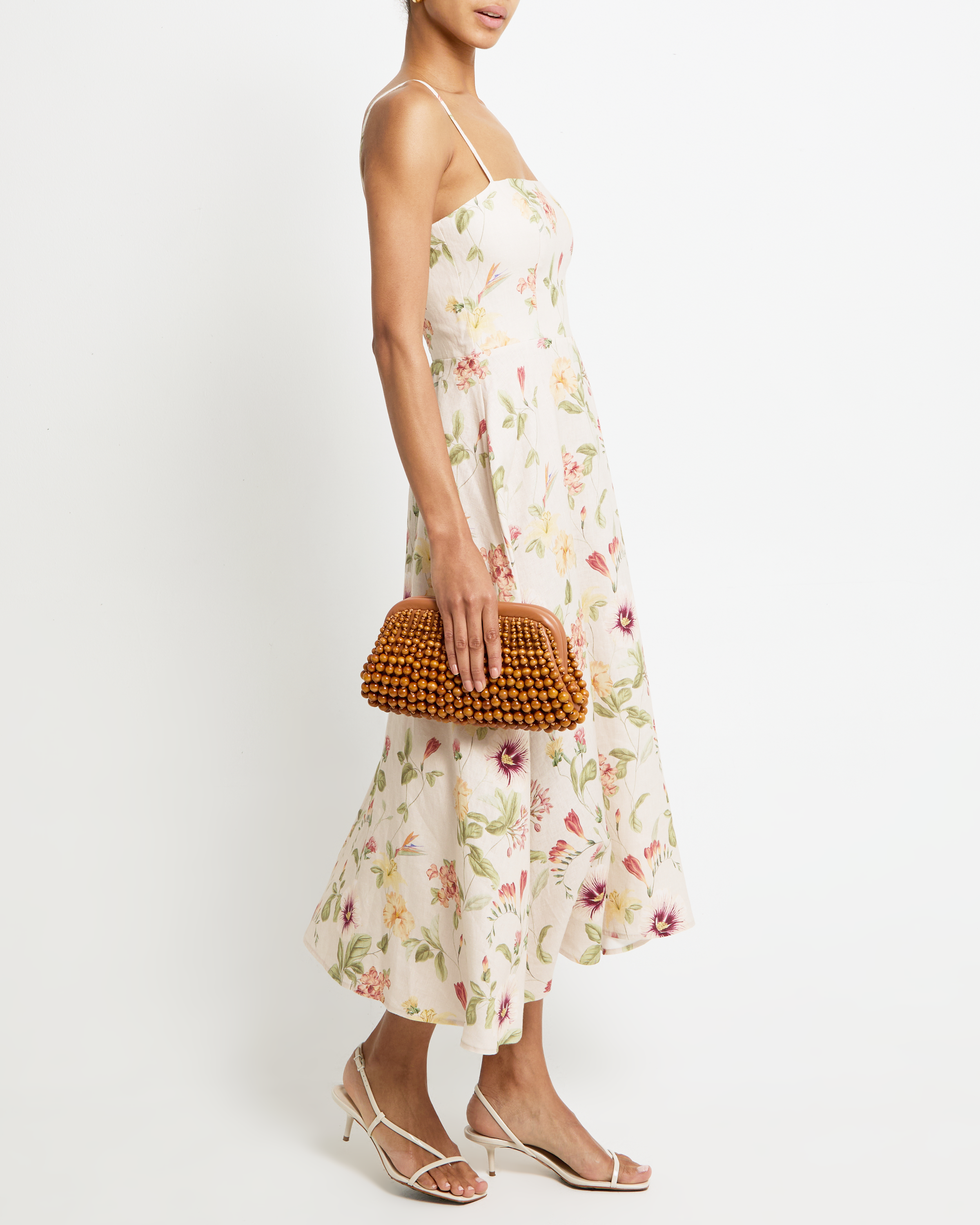 Effortlessly elevate your wardrobe with the Khalani Dress. Made with fresh, lightweight linen, this dress boasts thin straps and a straight neckline for a sophisticated look. The elegant full skirt adds a touch of effortless charm. Perfect for any occasion.