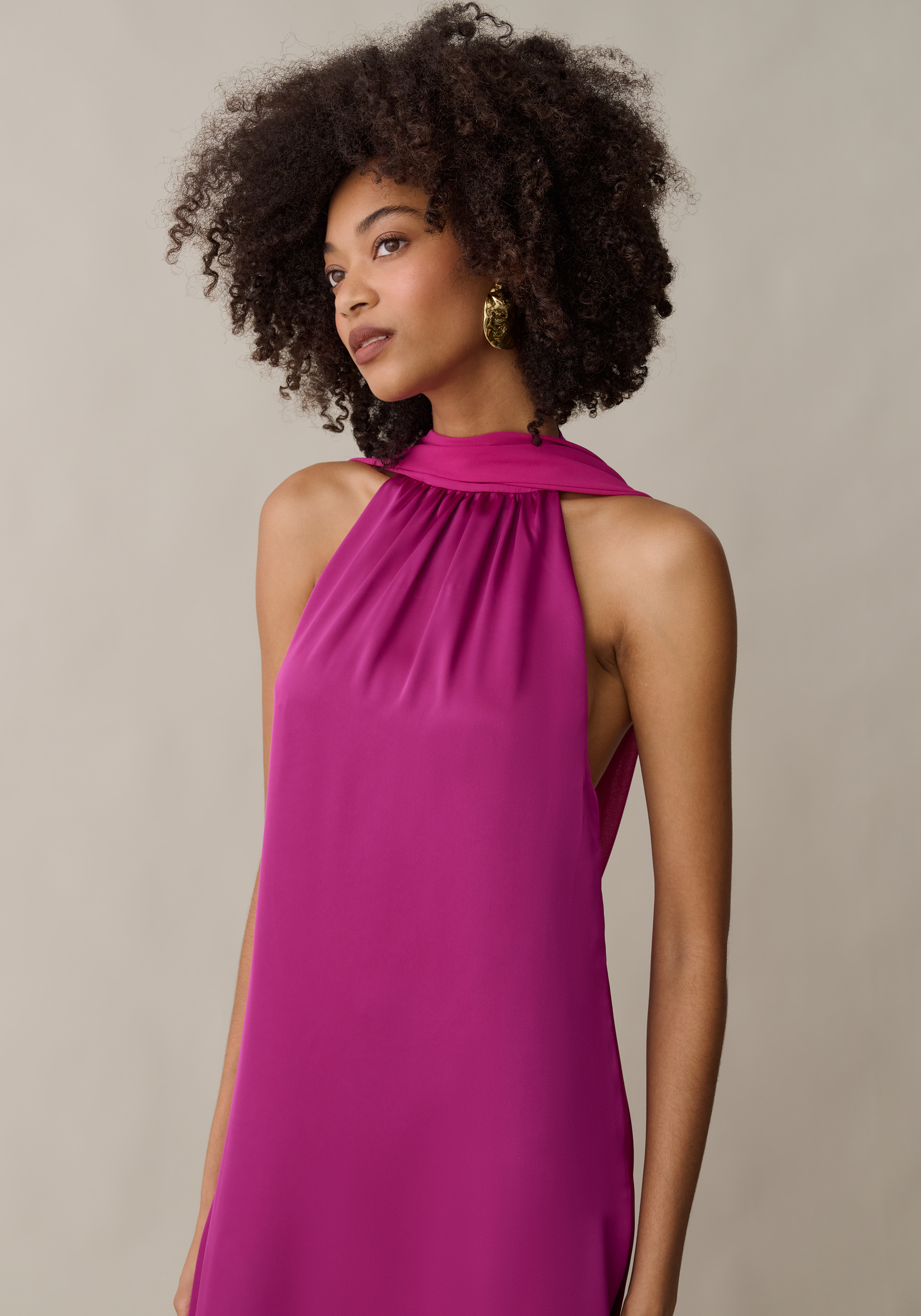 The Alessia Dress offers endless possibilities with its versatile design and stunning chiffon neck scarf. The open back adds an elegant touch to any occasion. Embrace effortless style and sophistication with this must-have dress.