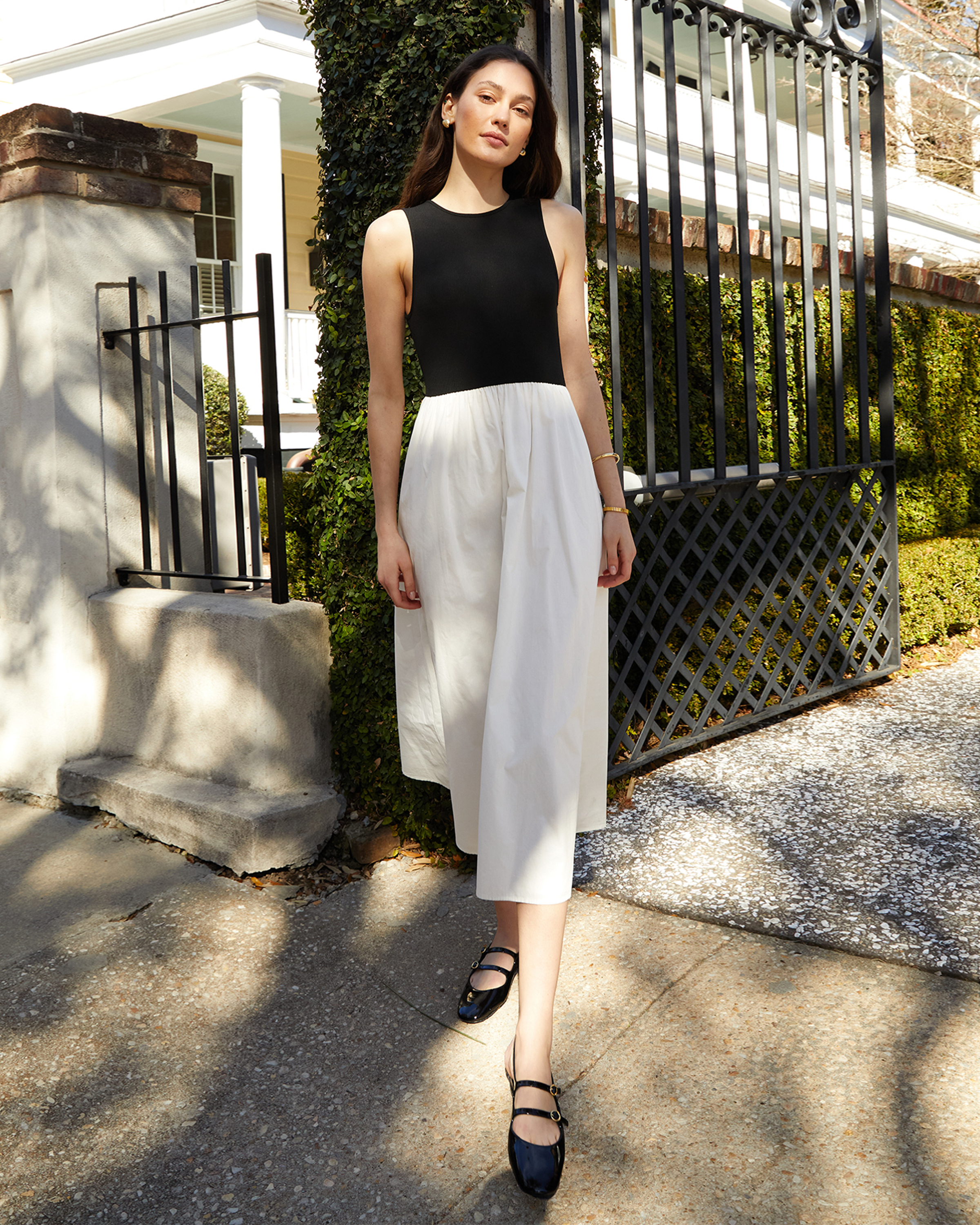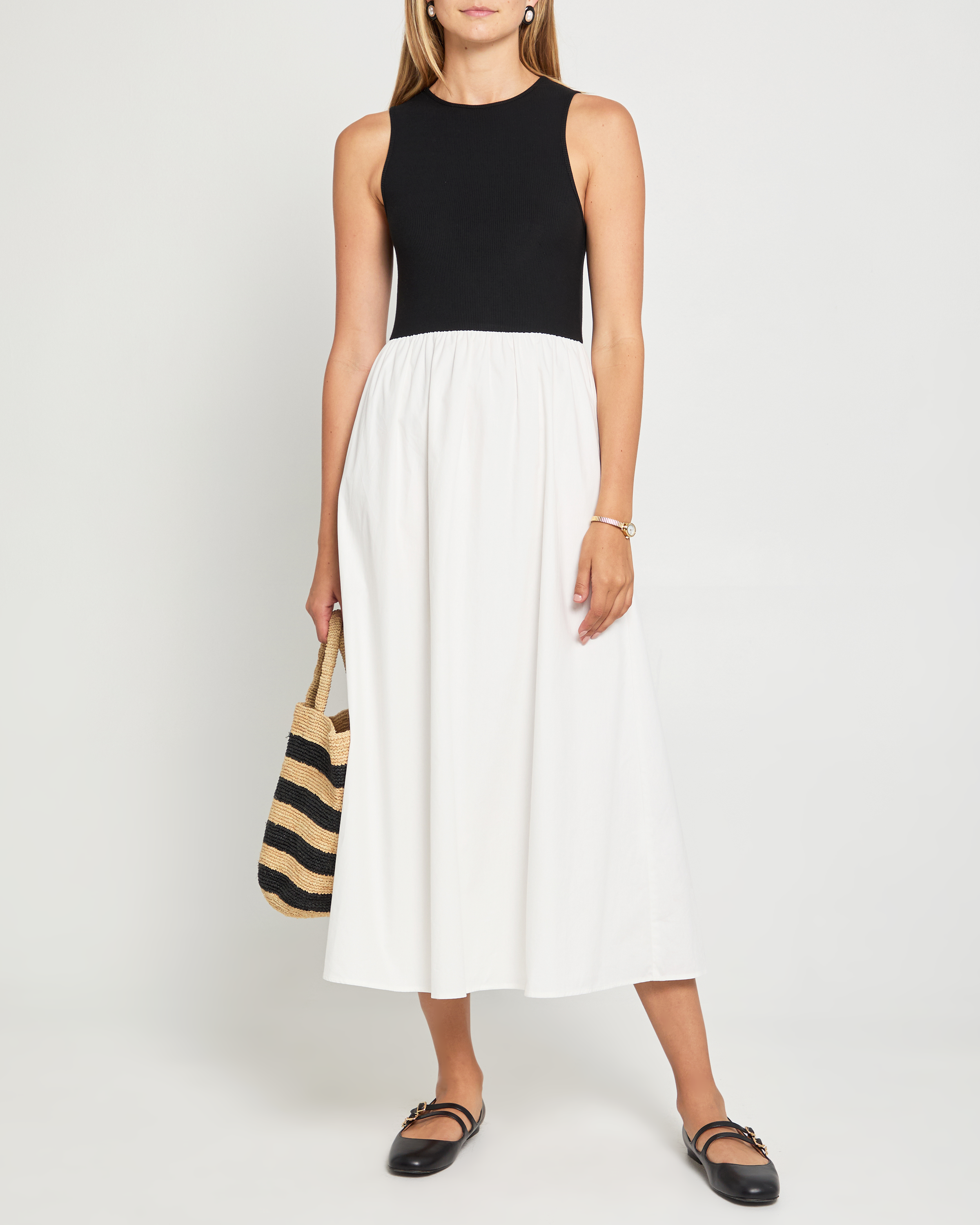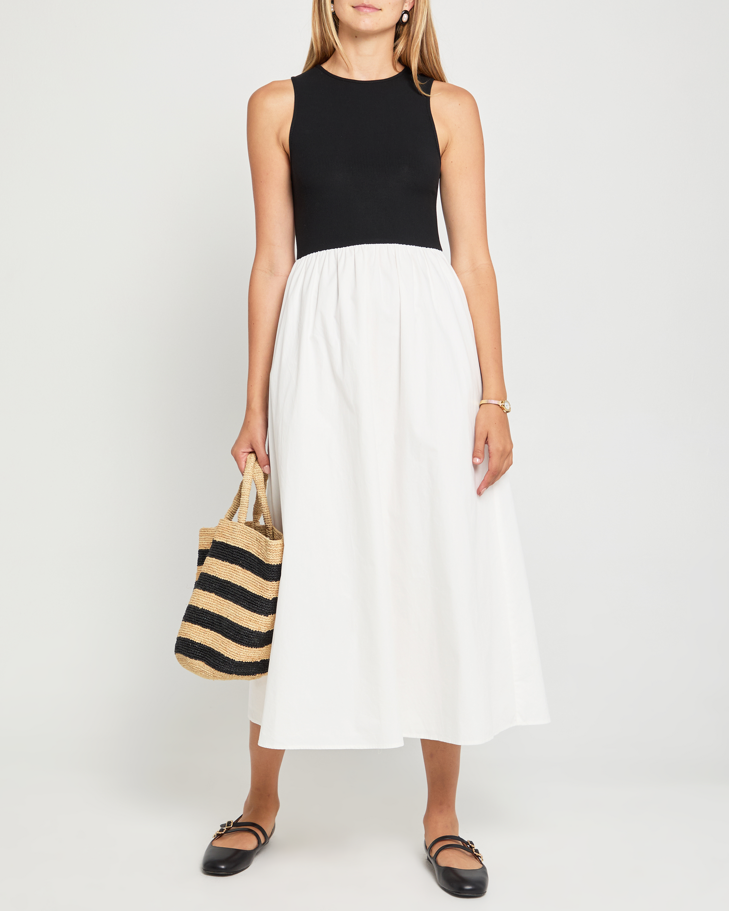 The Amber Dress boasts a chic and sophisticated design with its white and black contrasted style. Its stretchy and comfy bodice ensures a perfect fit, while the breezy cotton skirt offers ultimate comfort. Elevate your wardrobe with this versatile and stylish dress.