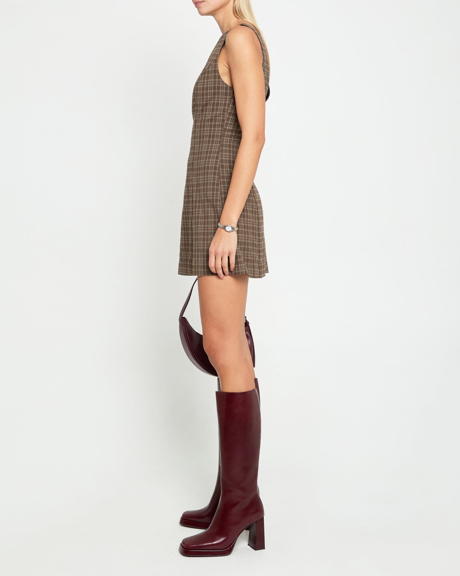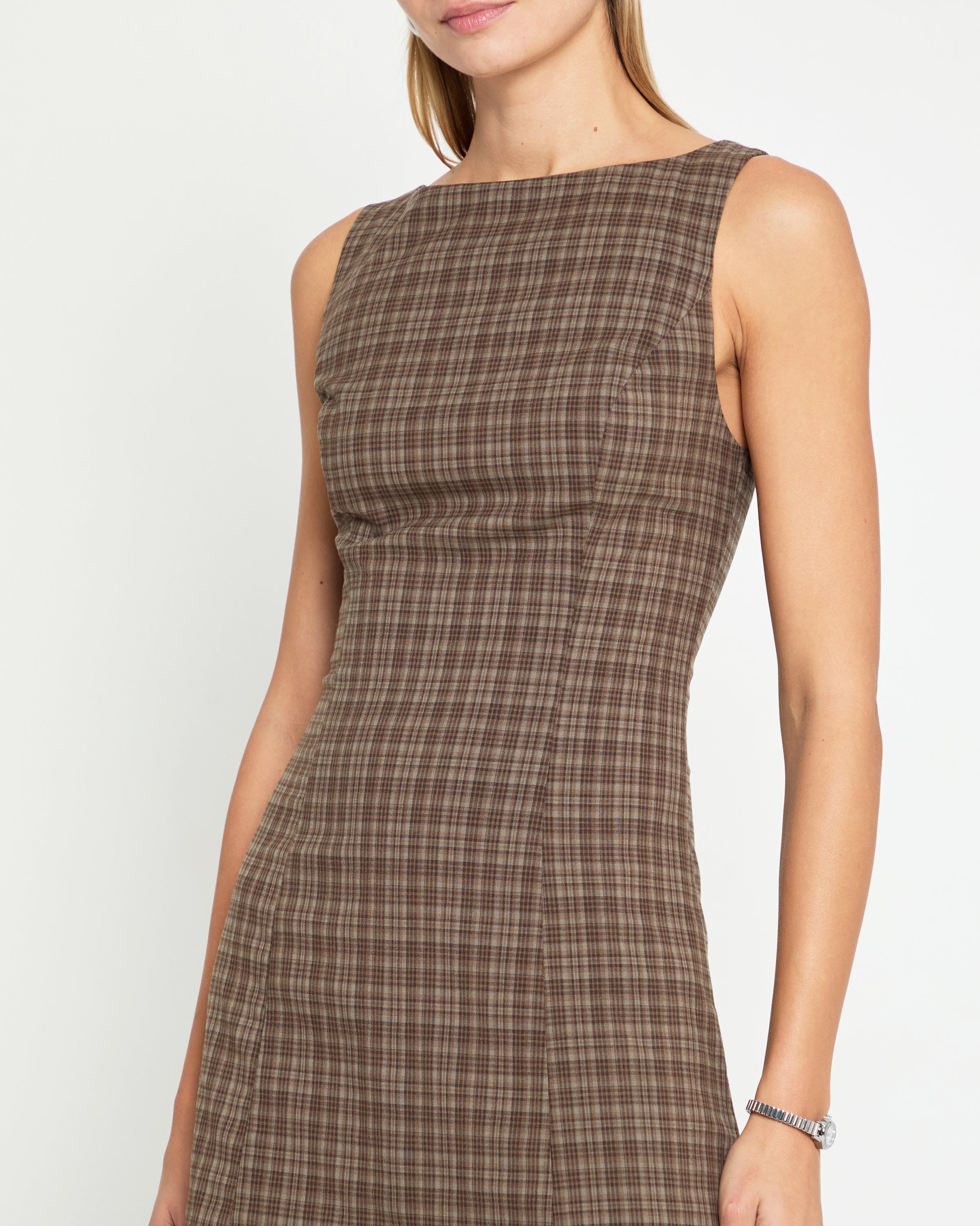 This Aspen Mini Dress combines a cool plaid print with timeless style. With a shift silhouette, classic boat neckline, and mini length, this dress is a modern take on a classic look.