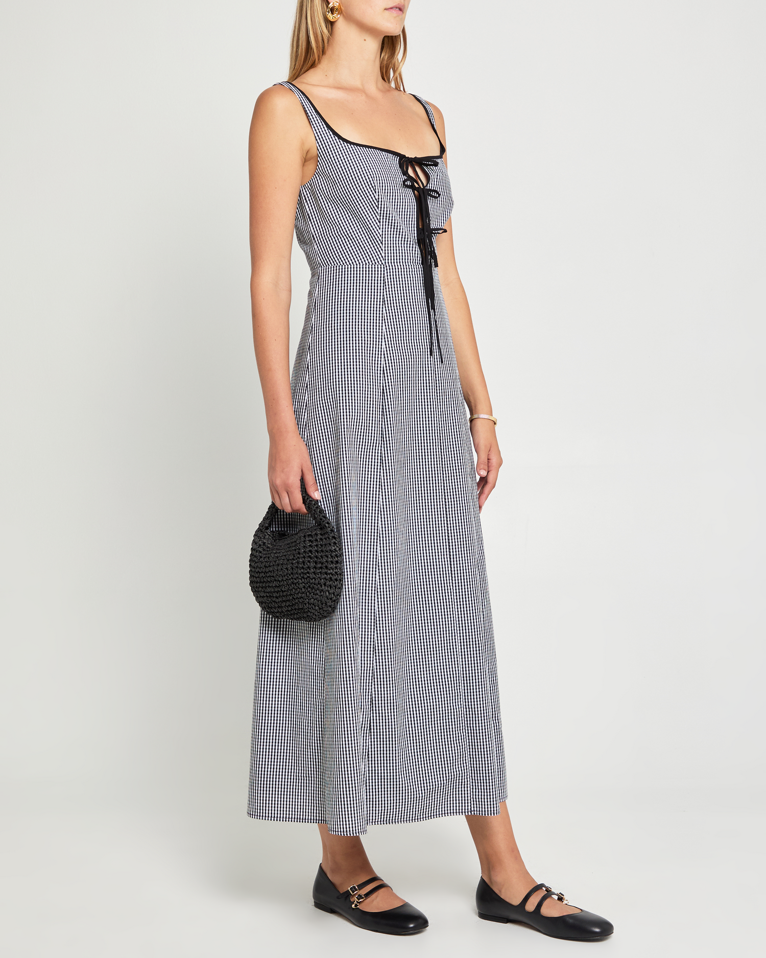 Introducing the Babette Dress, a sweet and effortless style featuring a classic black and white gingham pattern. With its front ties, this dress allows for a custom fit while adding a touch of charm. Stay cool and comfortable in this airy, must-have dress.