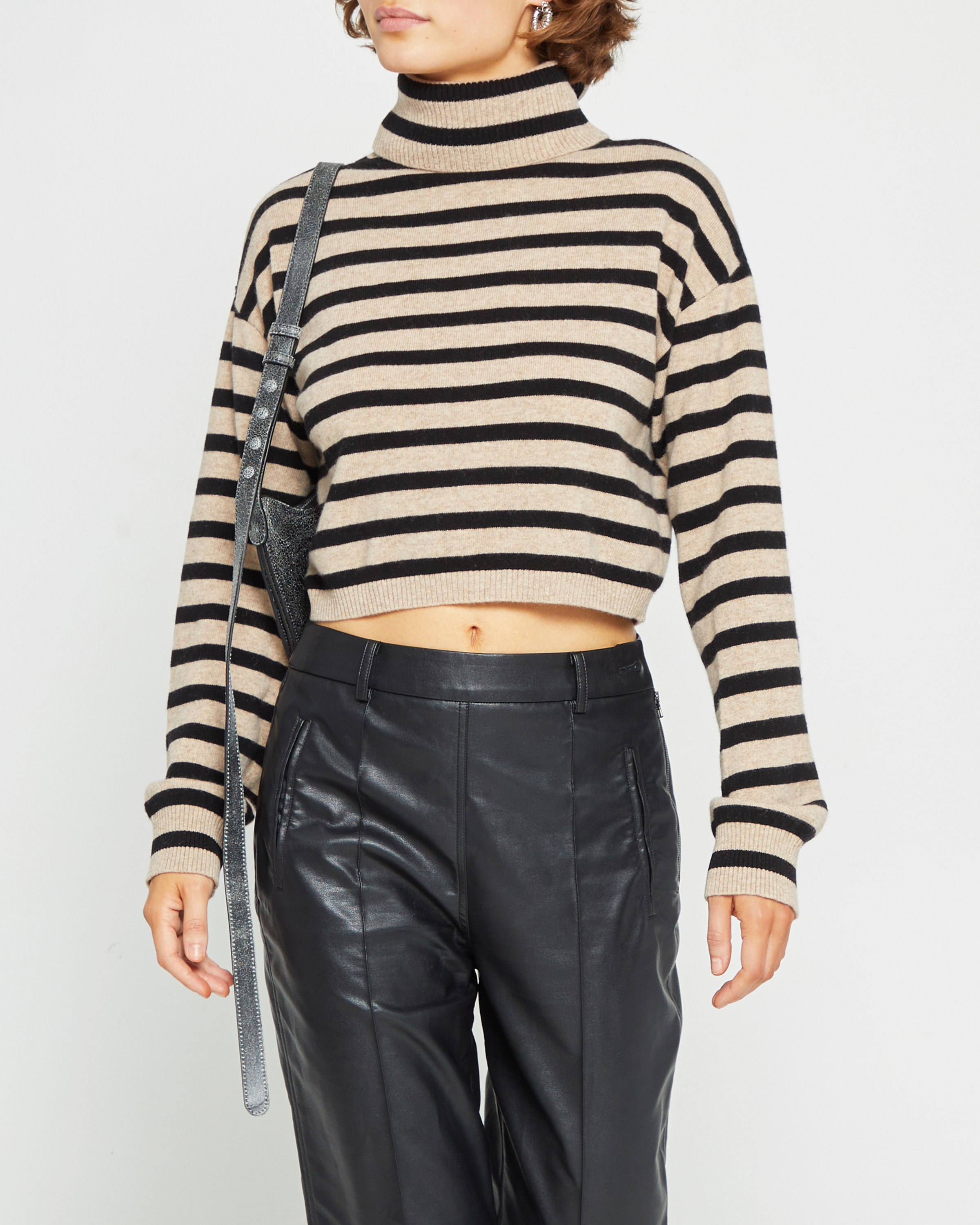Introducing the Bentley Sweater, the perfect winter wardrobe piece. This classic cropped design with striped detailing looks effortless and timeless. Done in luxurious knit in neutral colors, this turtleneck sweater will complete any look.
