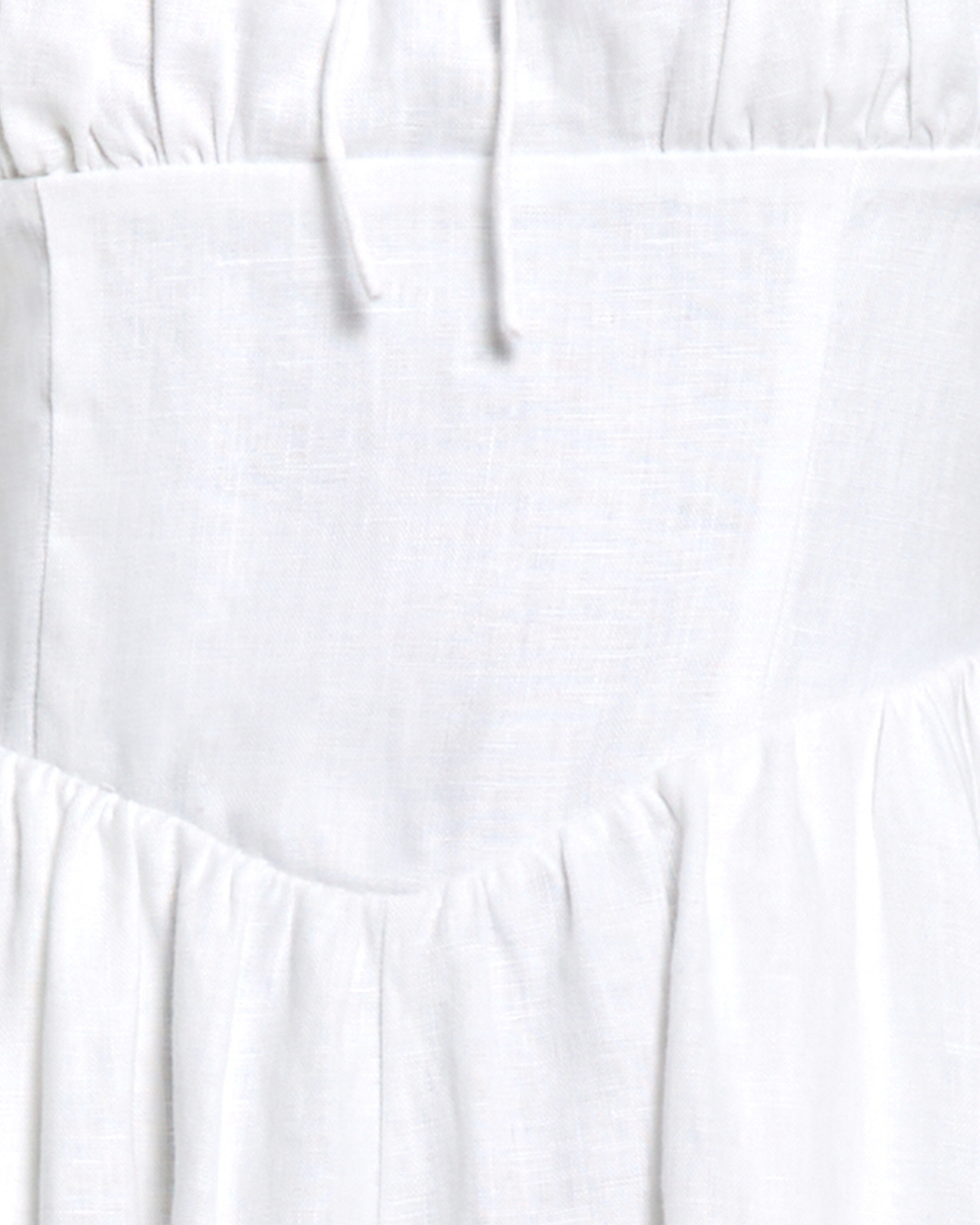 Elevate your wardrobe with the Chiara Linen Dress. Designed with a fitted waist and gathered bust for a flattering silhouette, its charming bow detail adds a touch of femininity. Made of breathable linen, this dress combines style and comfort effortlessly.