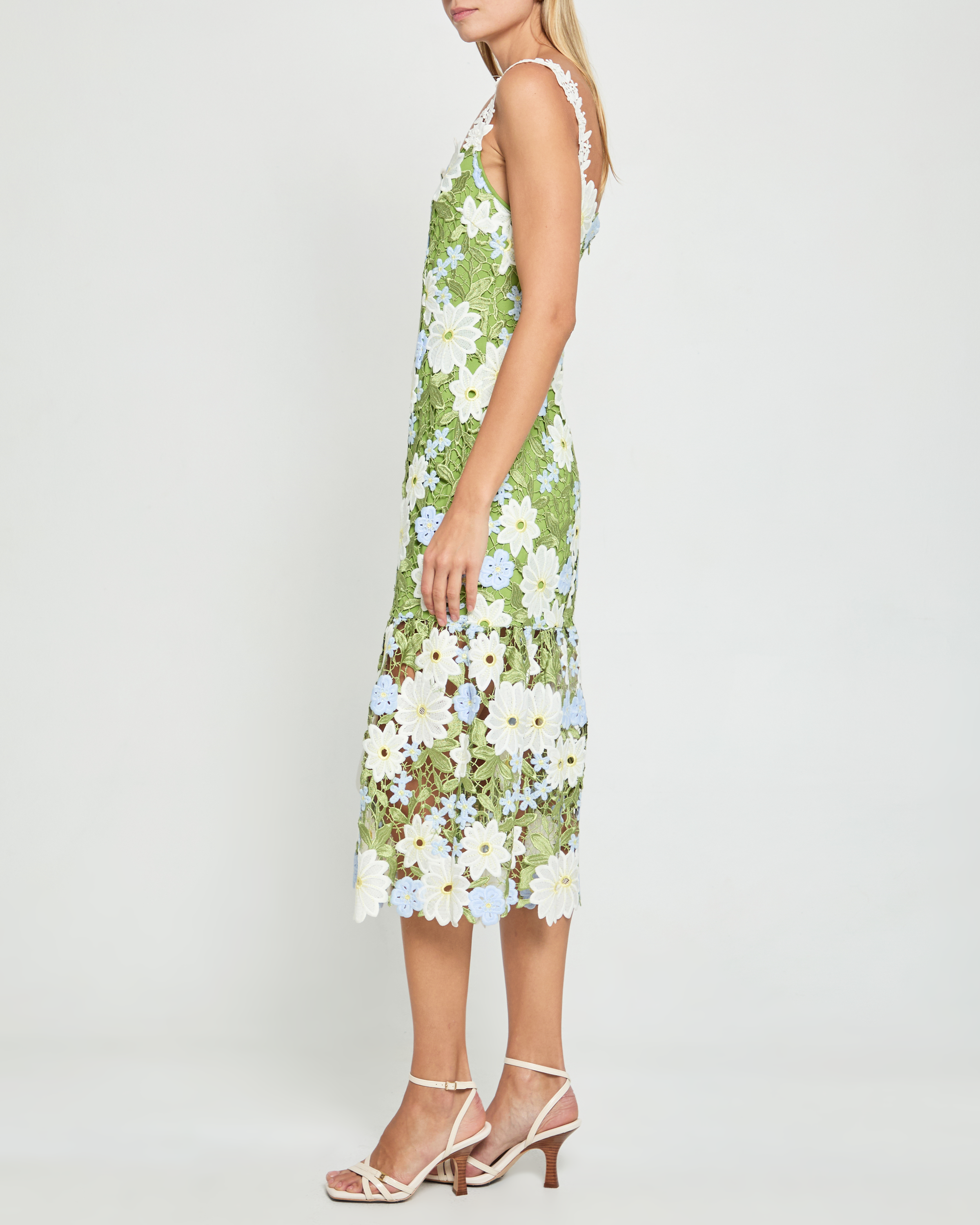 The Jayne Dress is a stunning, one-of-a-kind piece featuring intricate floral embroidery material and delicate floral straps. This dress is fully lined, making it both beautiful and comfortable. Elevate any occasion with this gorgeous and unique dress.
