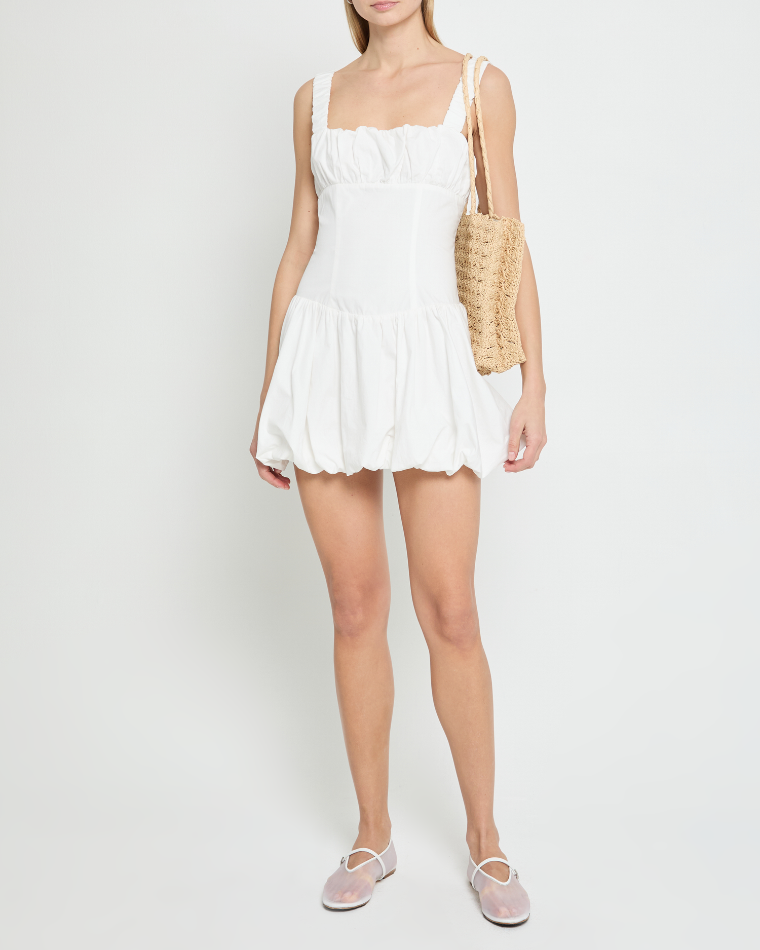 The ruched bust and bubble skirt create a flattering silhouette, while the soft butter yellow color adds a touch of sunshine to your style. This short and sweet mini dress is the perfect charming addition to your wardrobe.