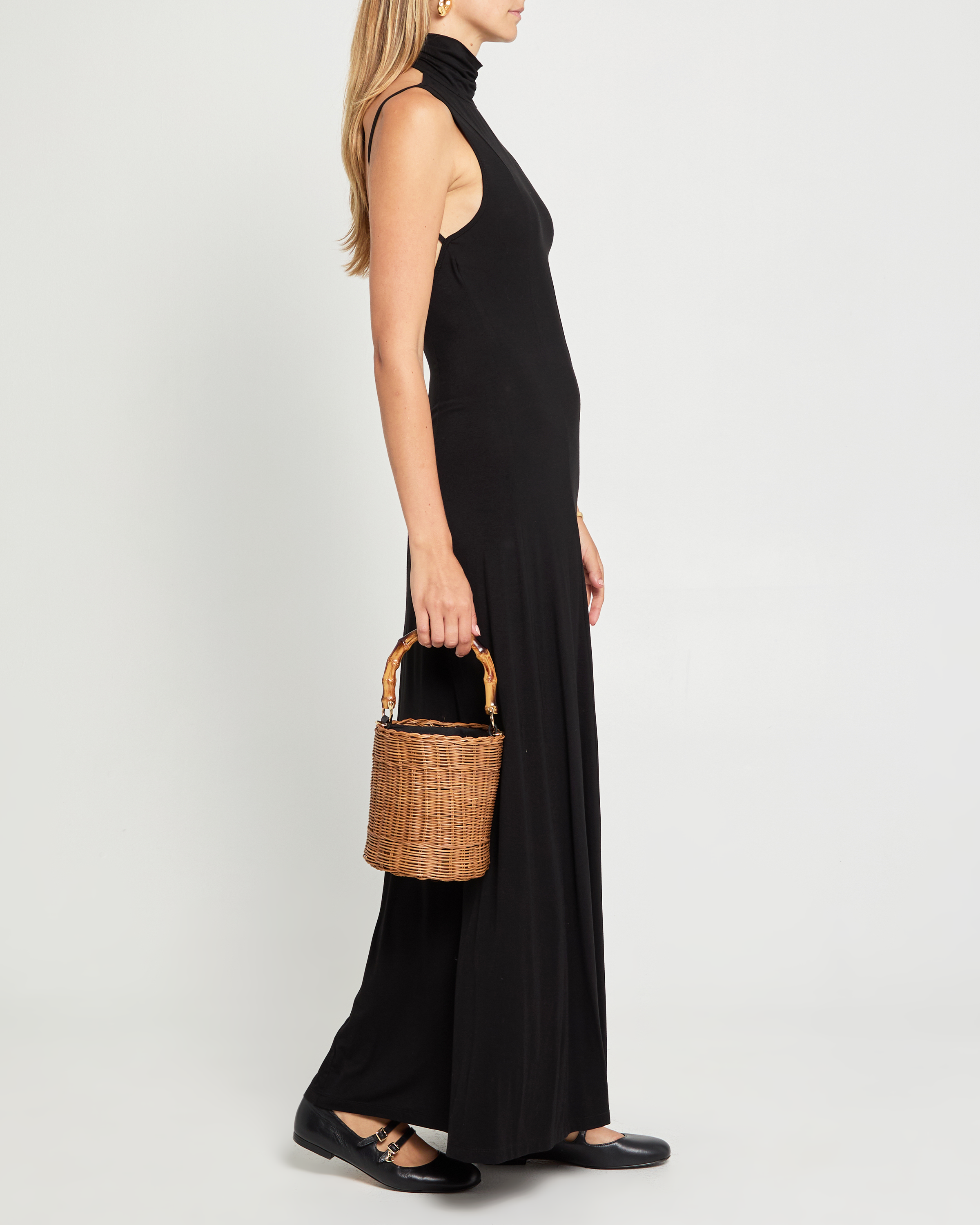 Meet the Mari Dress, a stunning and versatile addition to your wardrobe. With its high neckline and maxi length, this dress exudes elegance and sophistication. The open back detail adds a touch of allure, while the flattering fitted silhouette creates a dramatic look.