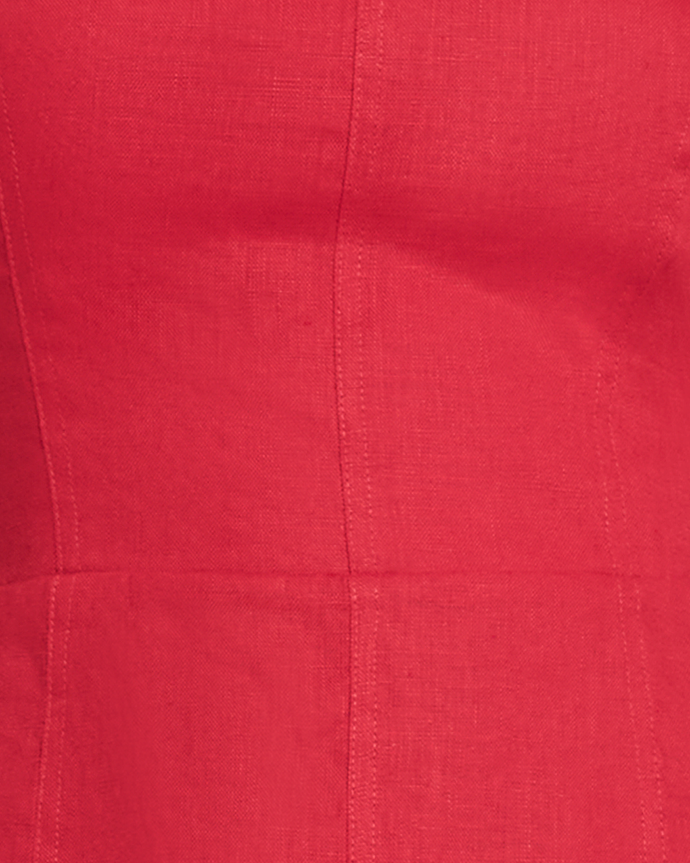Crafted from high-quality linen, this dress boasts a sleek and chic silhouette that is both timeless and modern. Its clean design makes it a versatile addition to any wardrobe, while its mini length adds a touch of flirty fun.