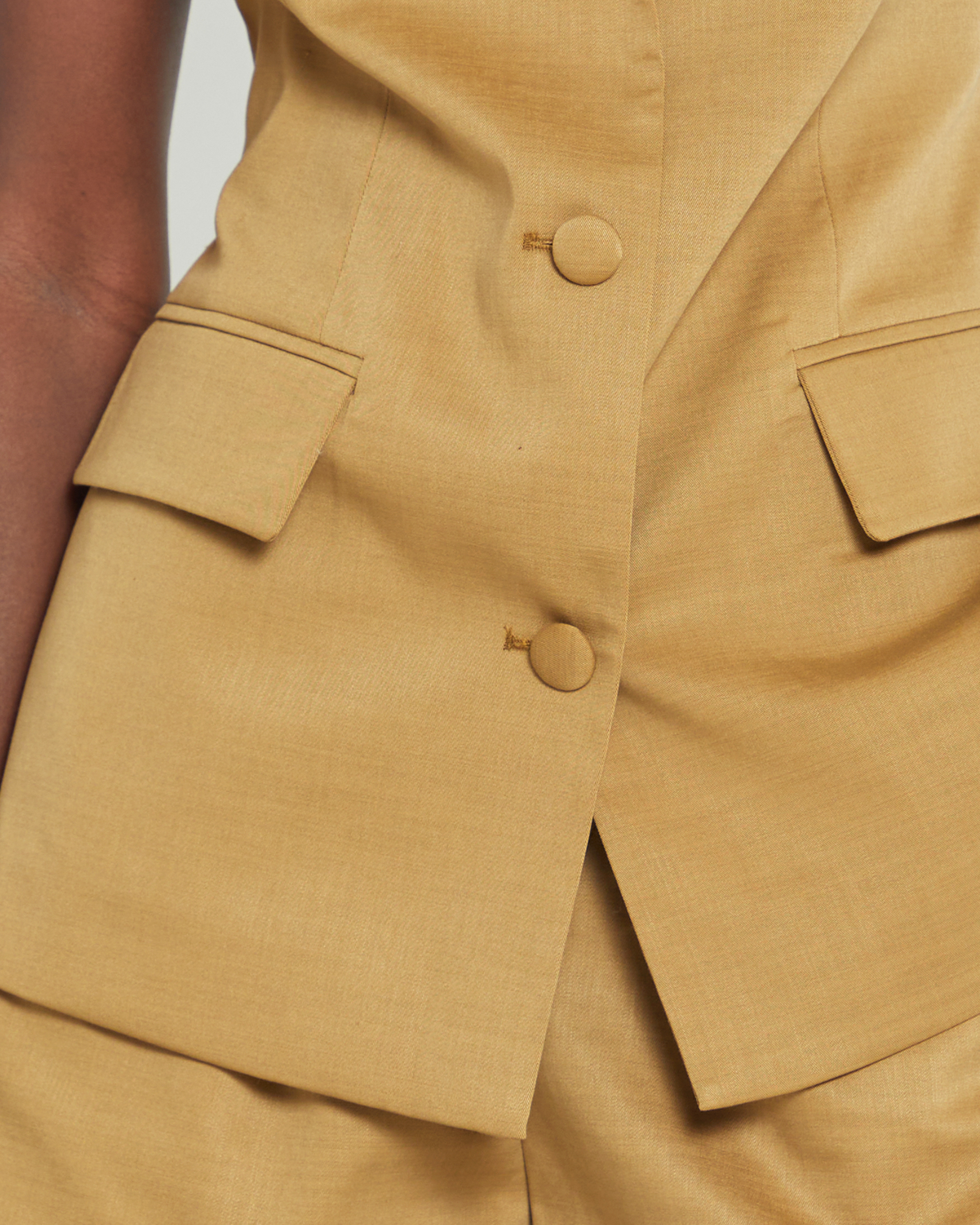 - Zipper and button on shorts