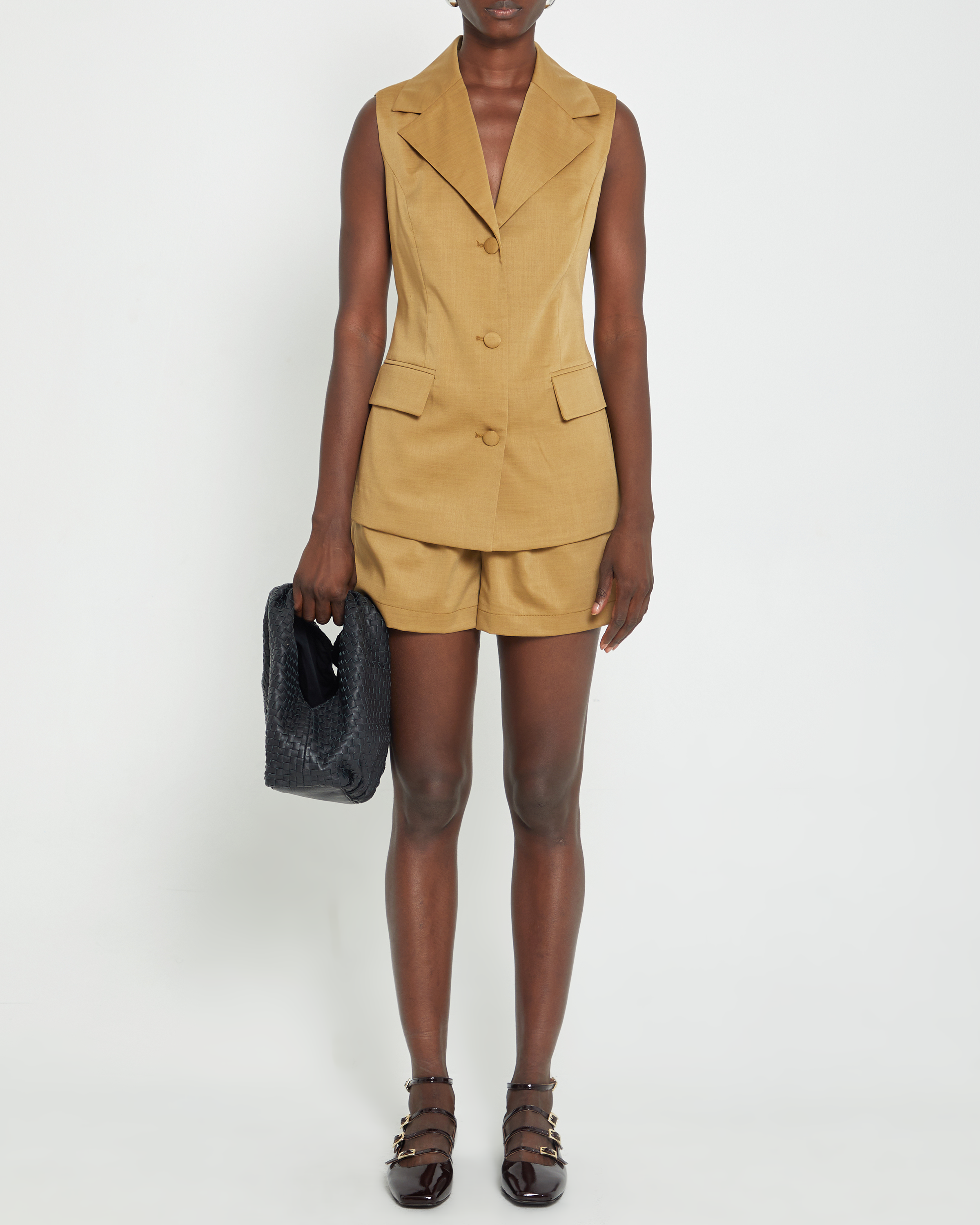 This matching button up vest and shorts set features classic lapel details and cool fabric. Perfect for any occasion, enjoy the benefits of looking sharp and put together with ease.