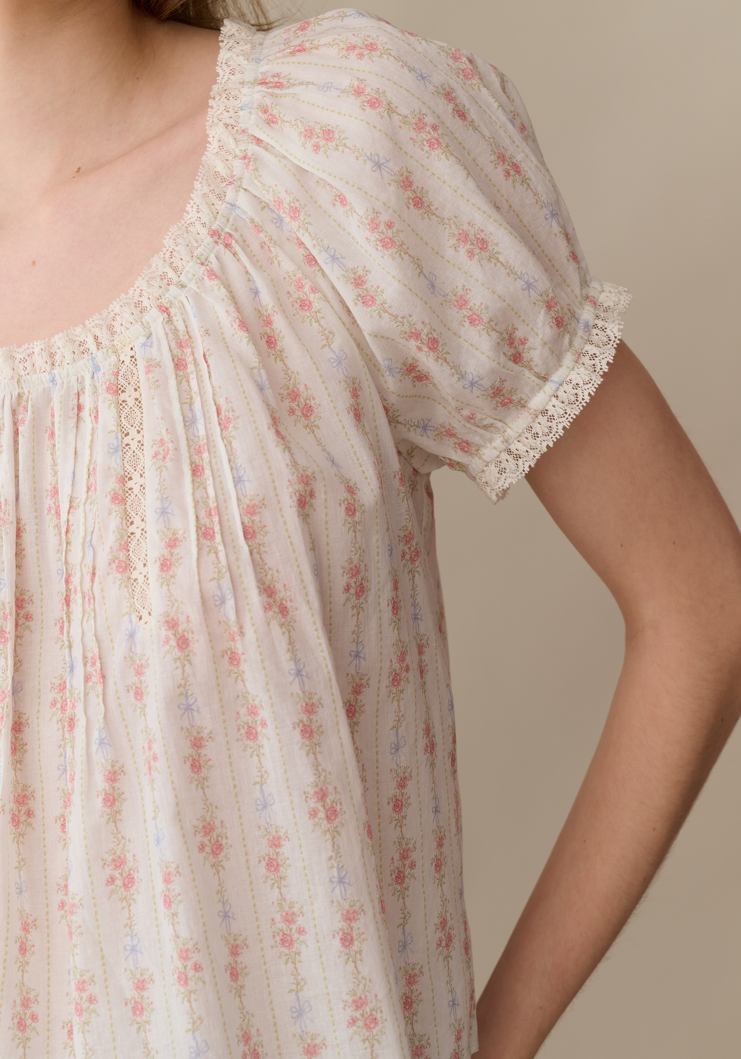 The Isaline Cotton Top is a delicately crafted blouse featuring charming puff sleeves and a light, airy cotton fabric that ensures comfort and breathability. Finished with dainty lace trim and sweet details for an easy, romantic look.