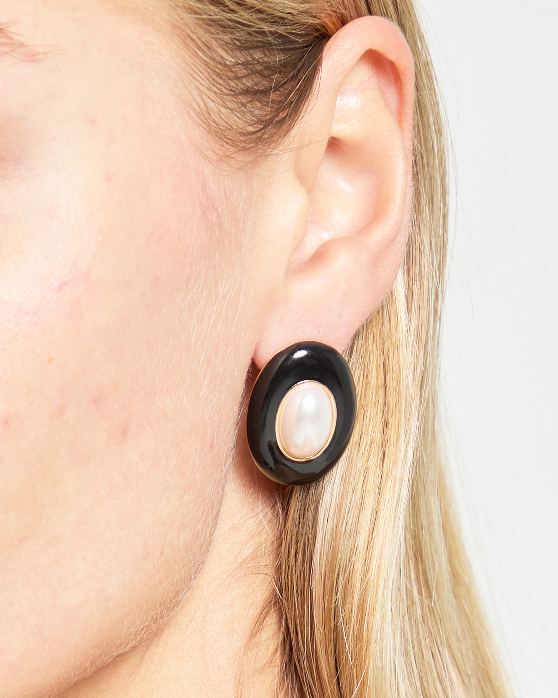Oval Pearl Enamel Stud Earrings