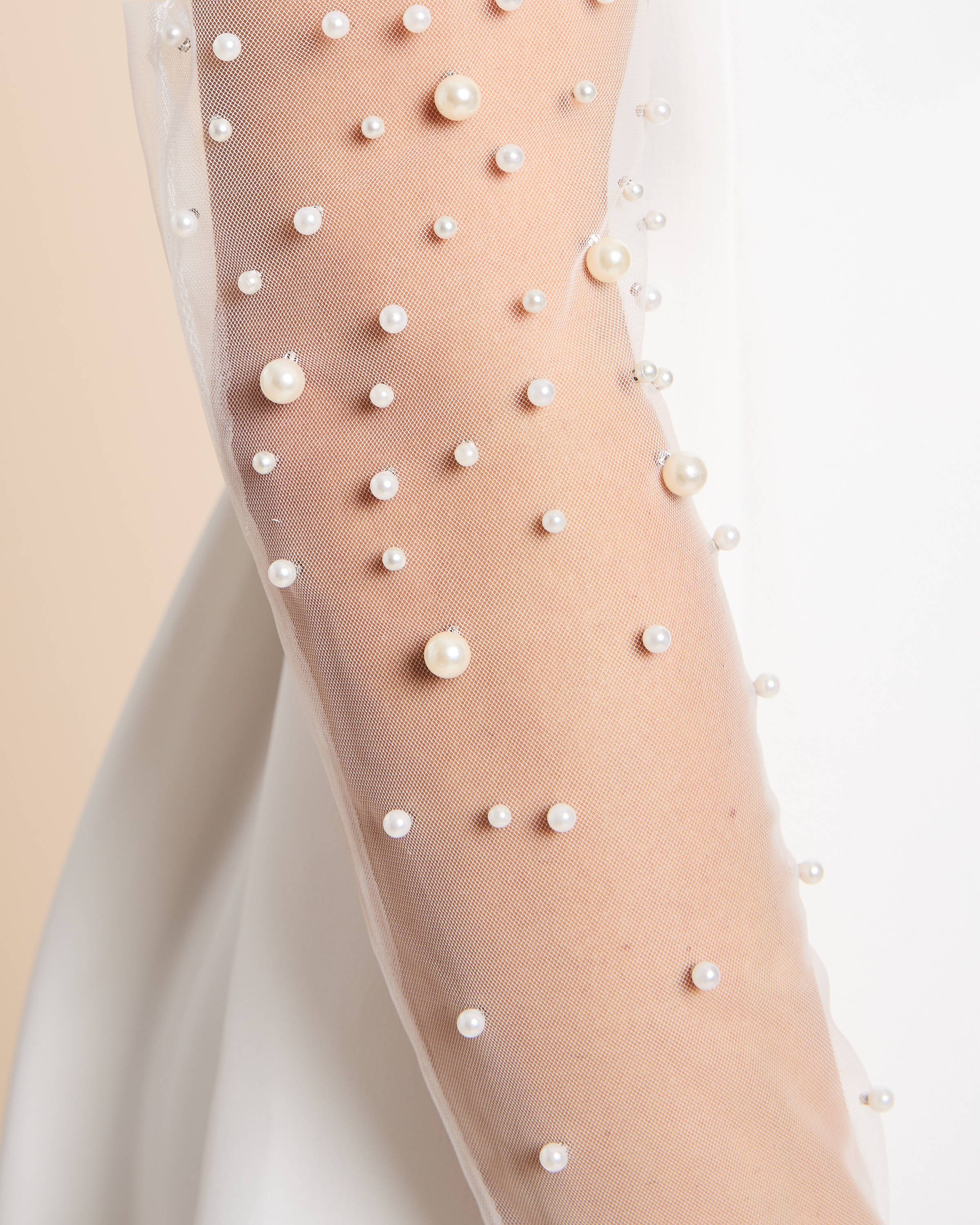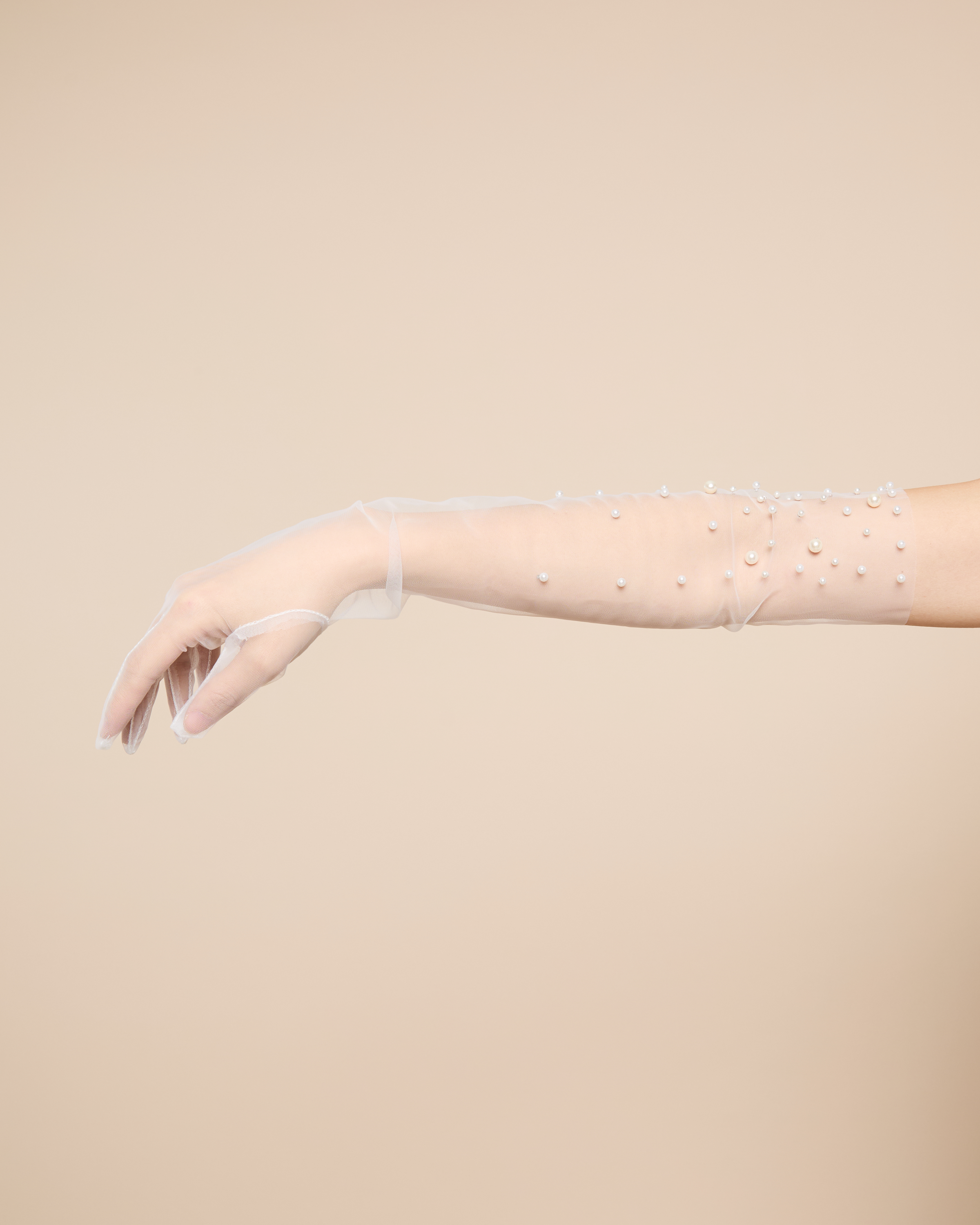 Dotted with an array of pearls, these classic netted mesh gloves have a feel of sweet and sophisticated whimsy.