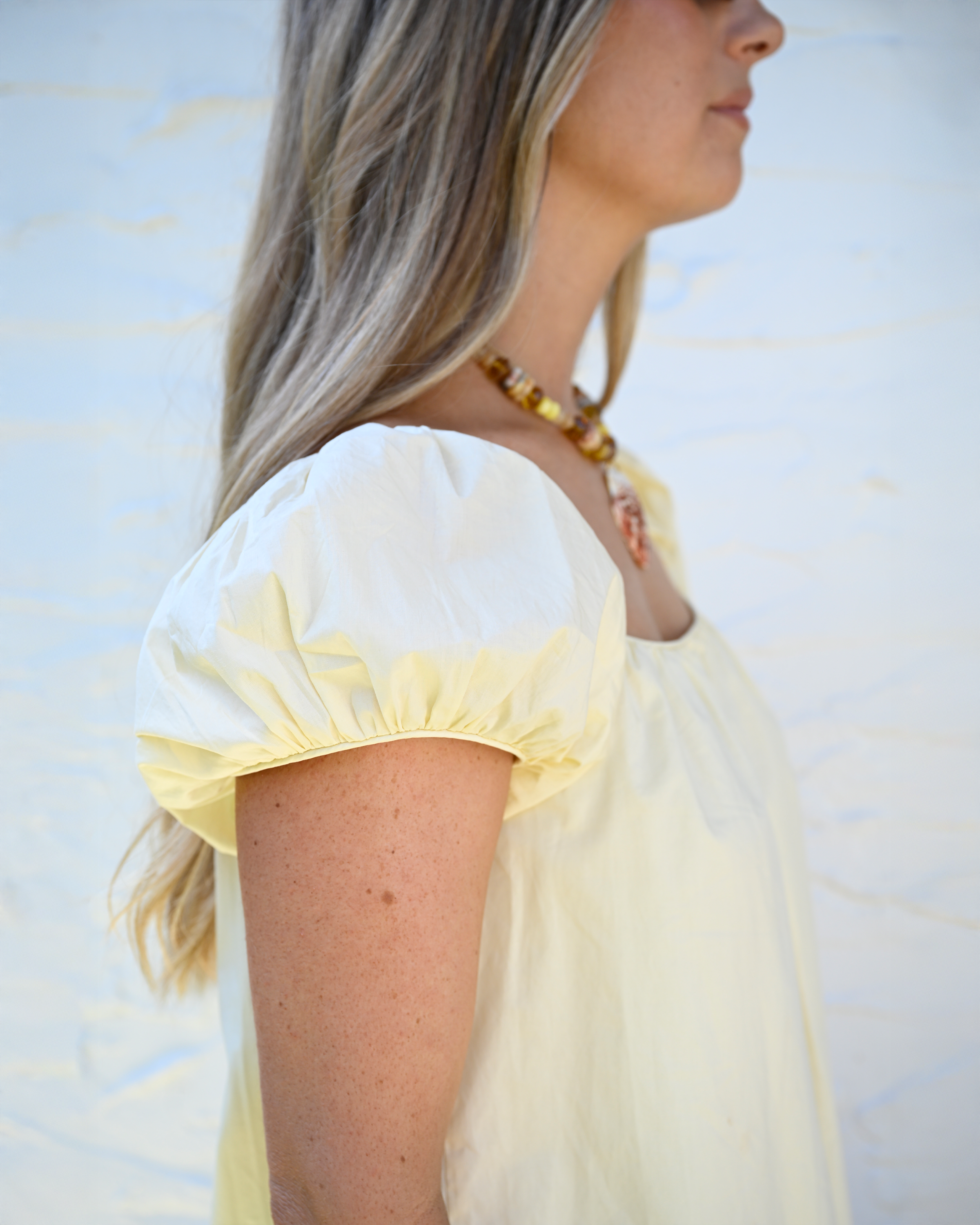 Slip into this easy shift dress for an effortlessly charming look. We love the super simple silhouette and adorable puffed cap sleeves of this relaxed mini. All made from a breathable butter yellow cotton for a sunny feel.