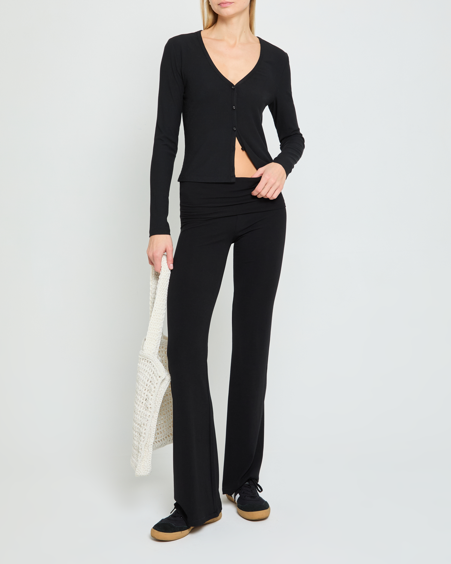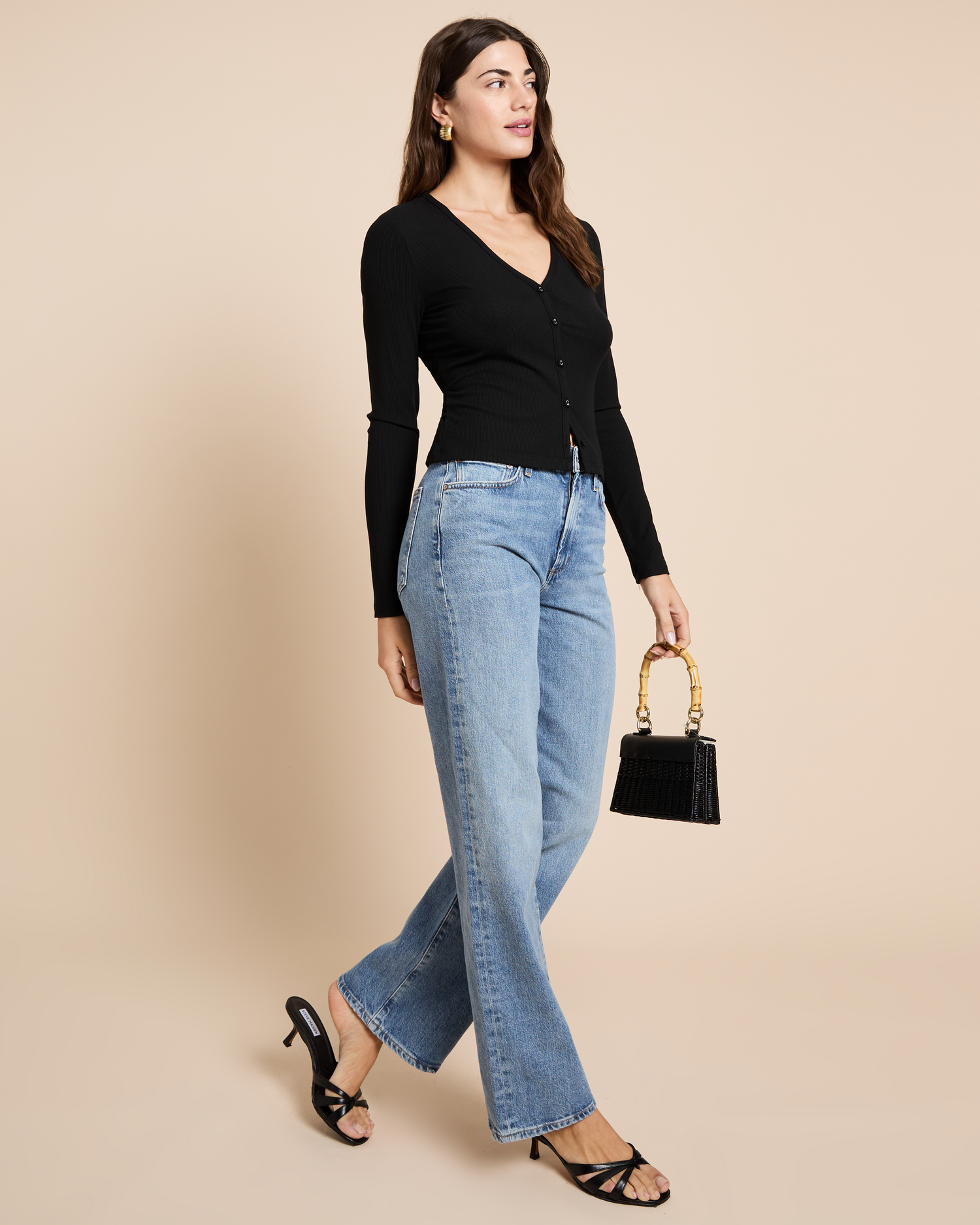 This buttery soft ribbed knit, button-up is perfect for lounging or as a light layer. Featuring a relaxed fit and long sleeves, it is both comfortable and versatile.